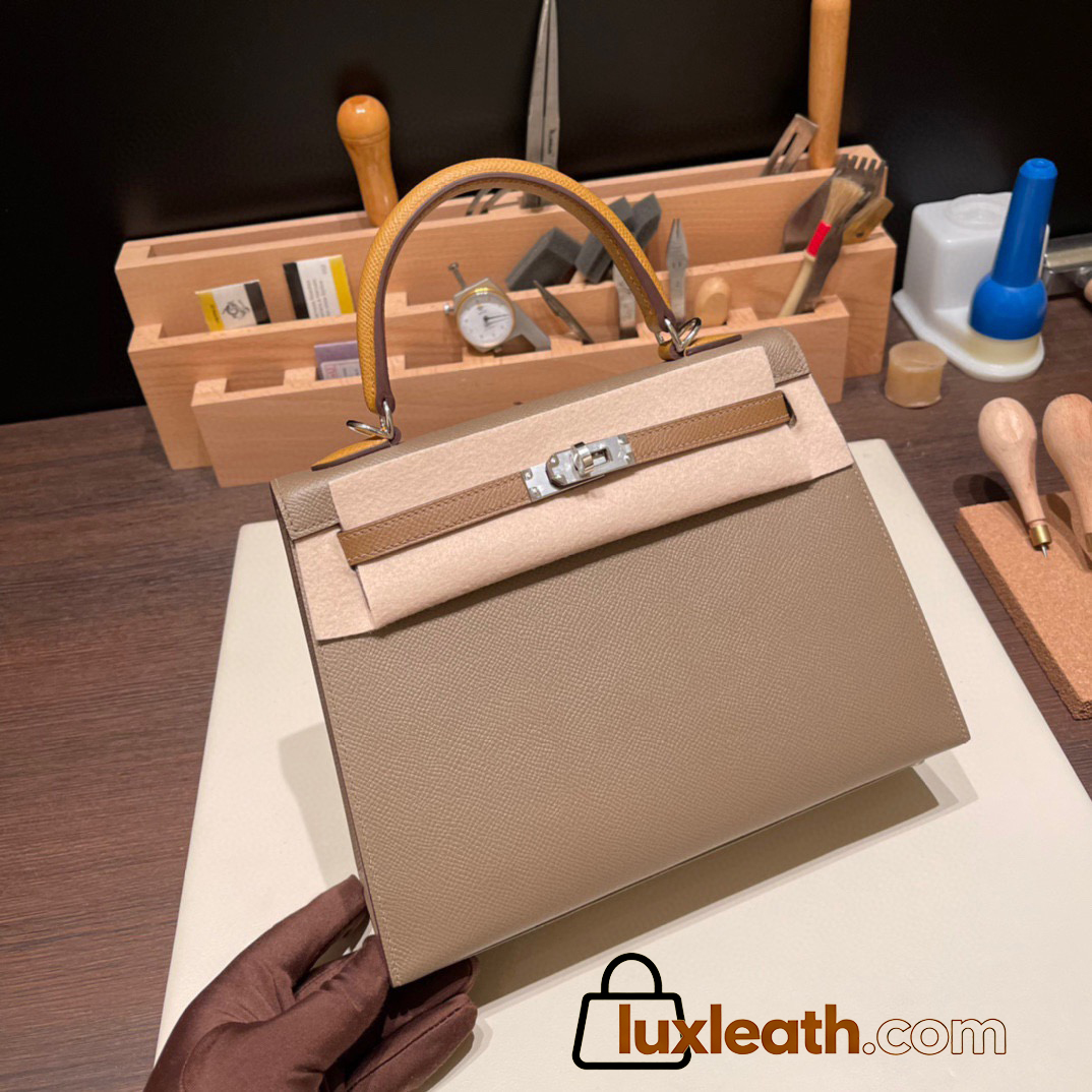 Hermes Kelly 25cm sellier swift Q1 /Sauge Gold Hardware Full Handmade 049