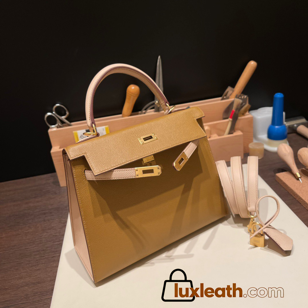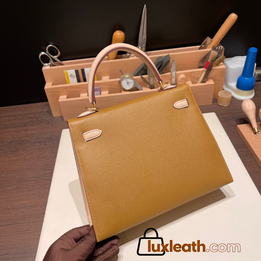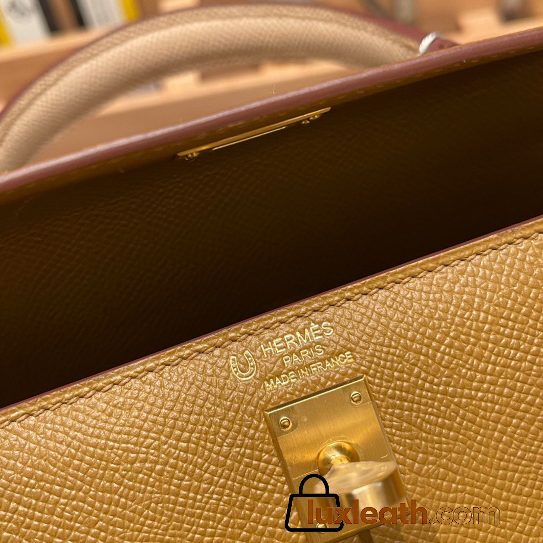 Hermes Kelly 25cm sellier Epsom touch U8 /Bronze Dore& P1/ Rose Eglantine Gold Hardware Full Handmade 055