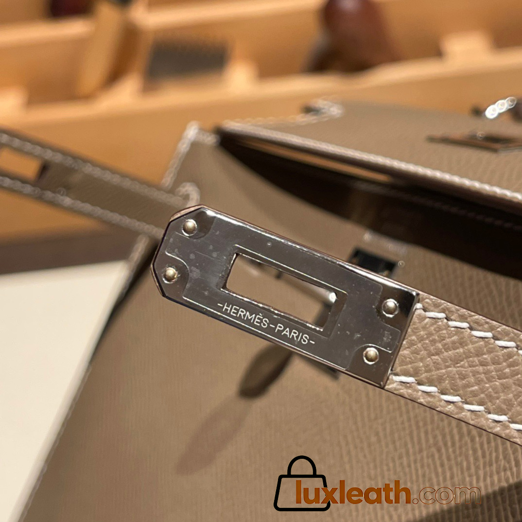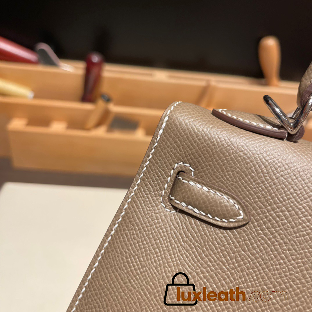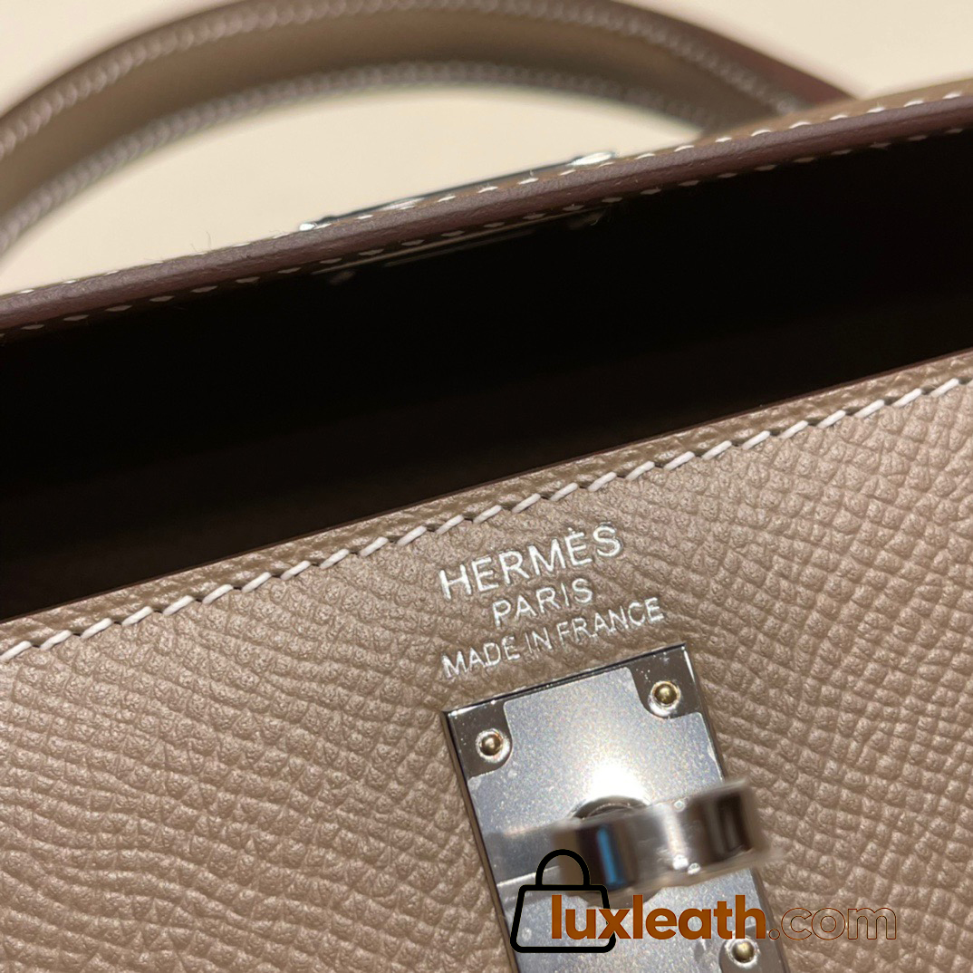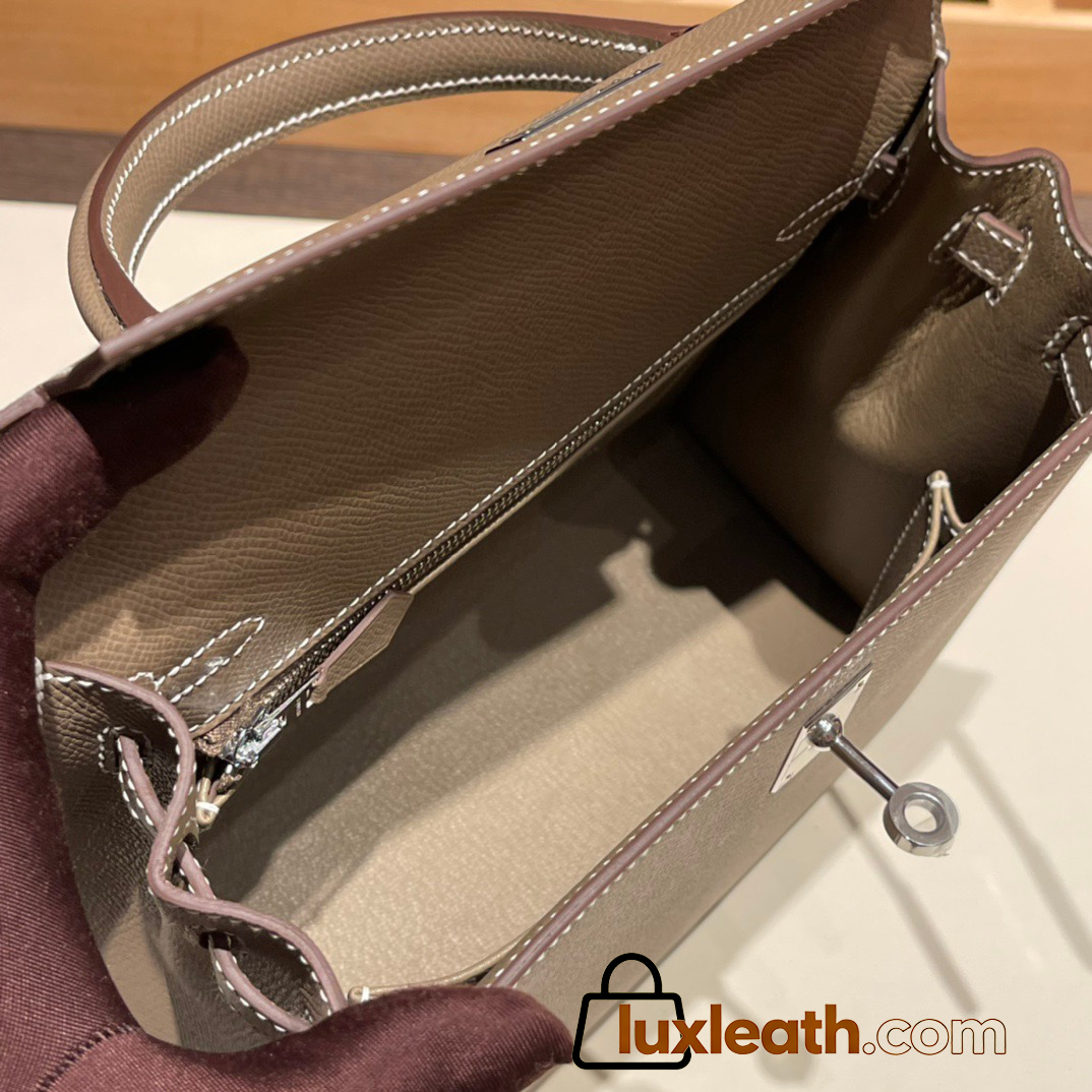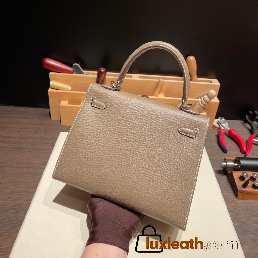 Hermes Kelly 25cm sellier Epsom 18 /Étoupe Grey Silver Hardware Full Handmade 064