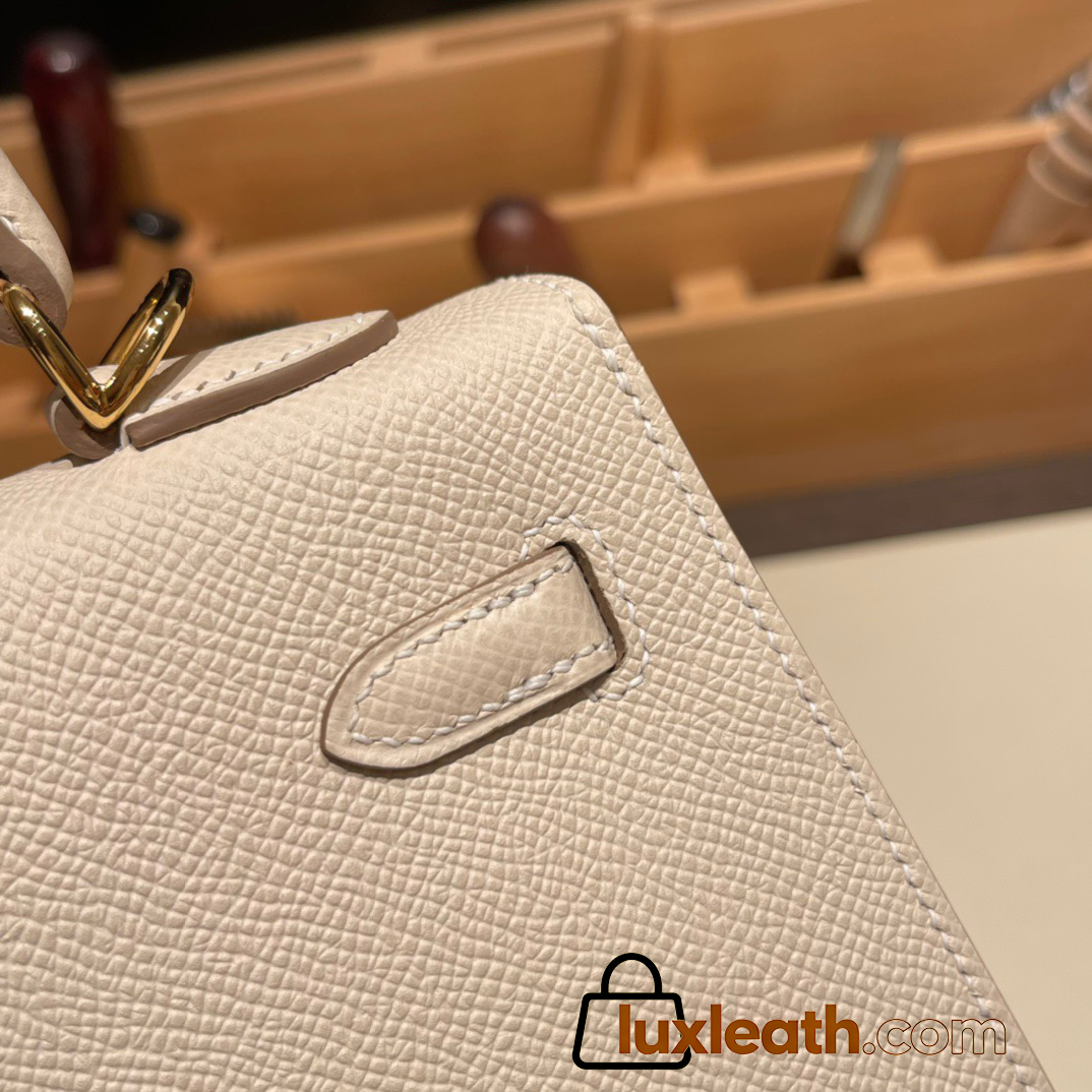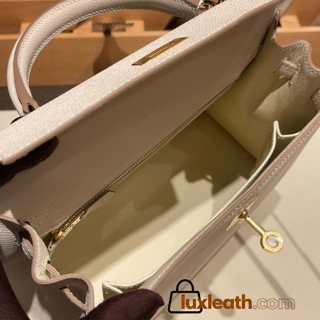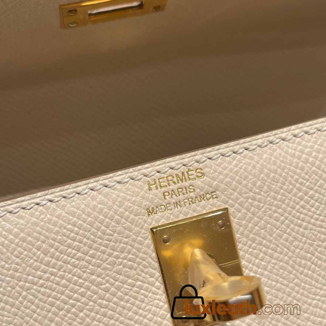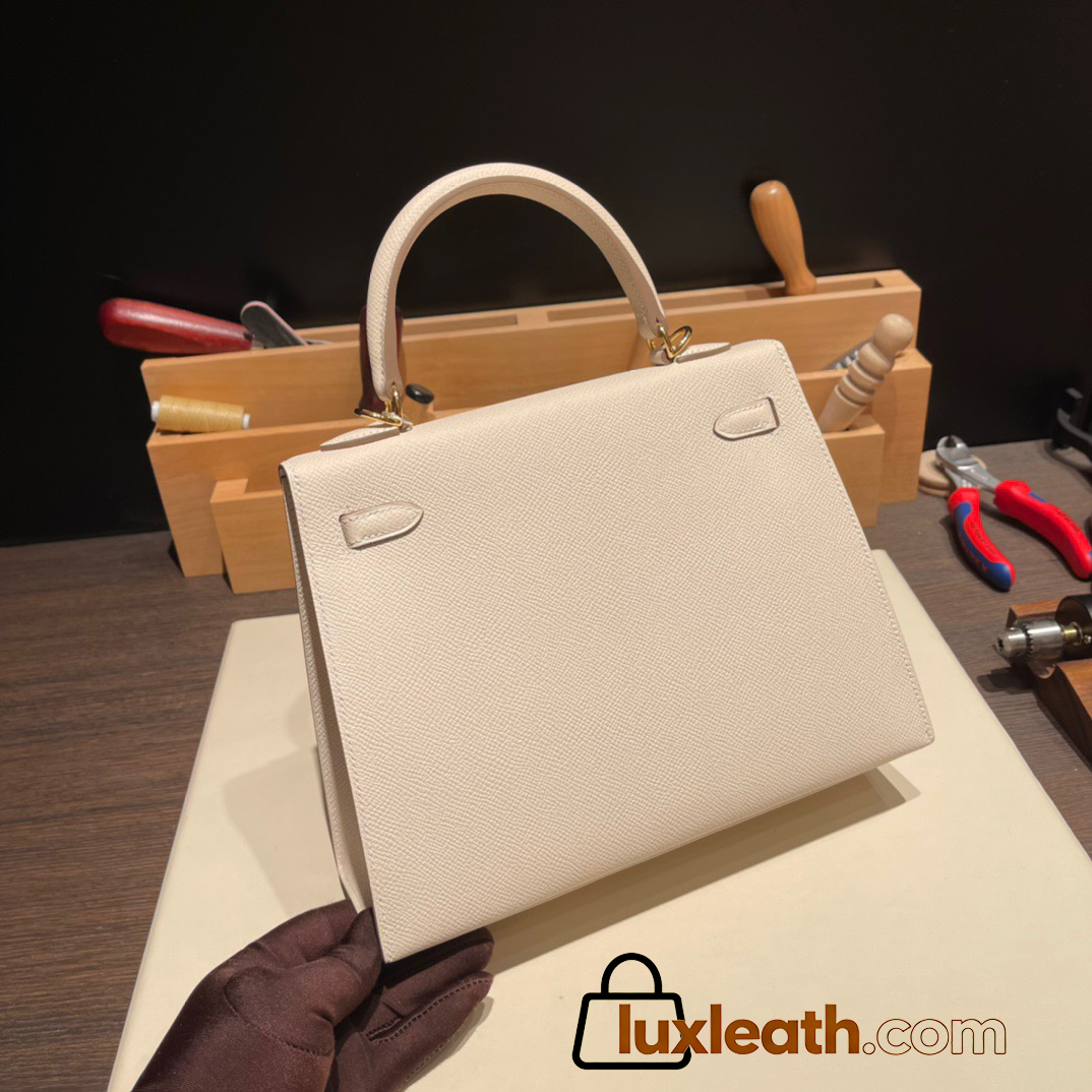 Hermes Kelly 25cm sellier Epsom 10 /Craie Gold Hardware Full Handmade 068