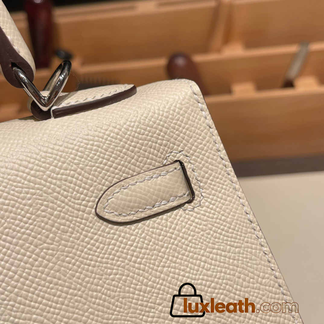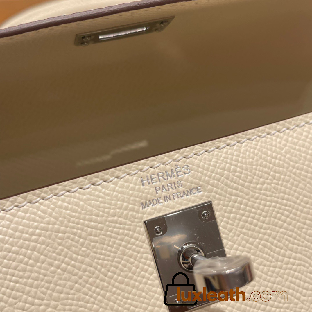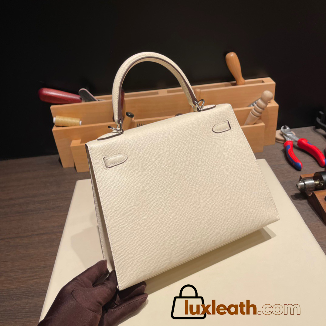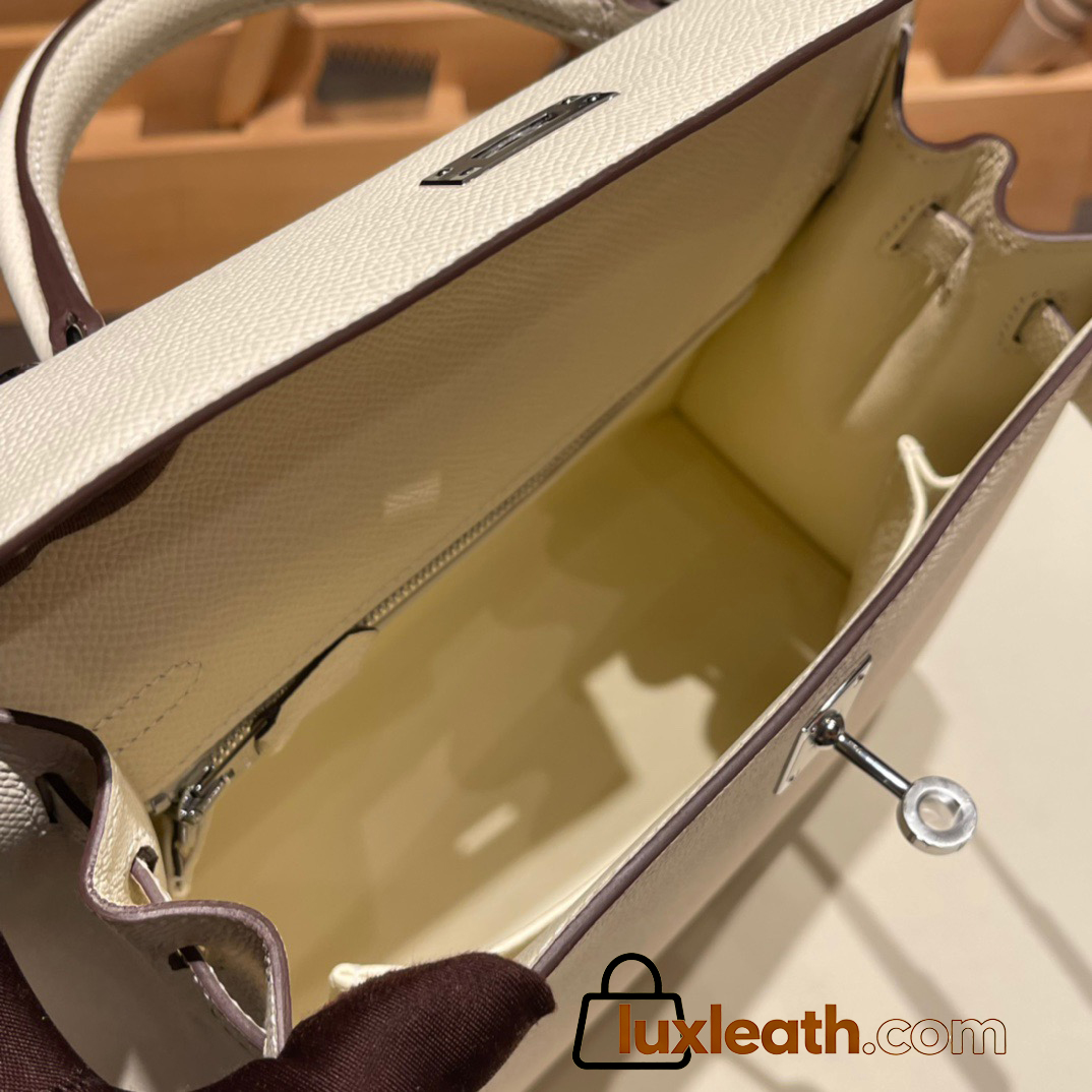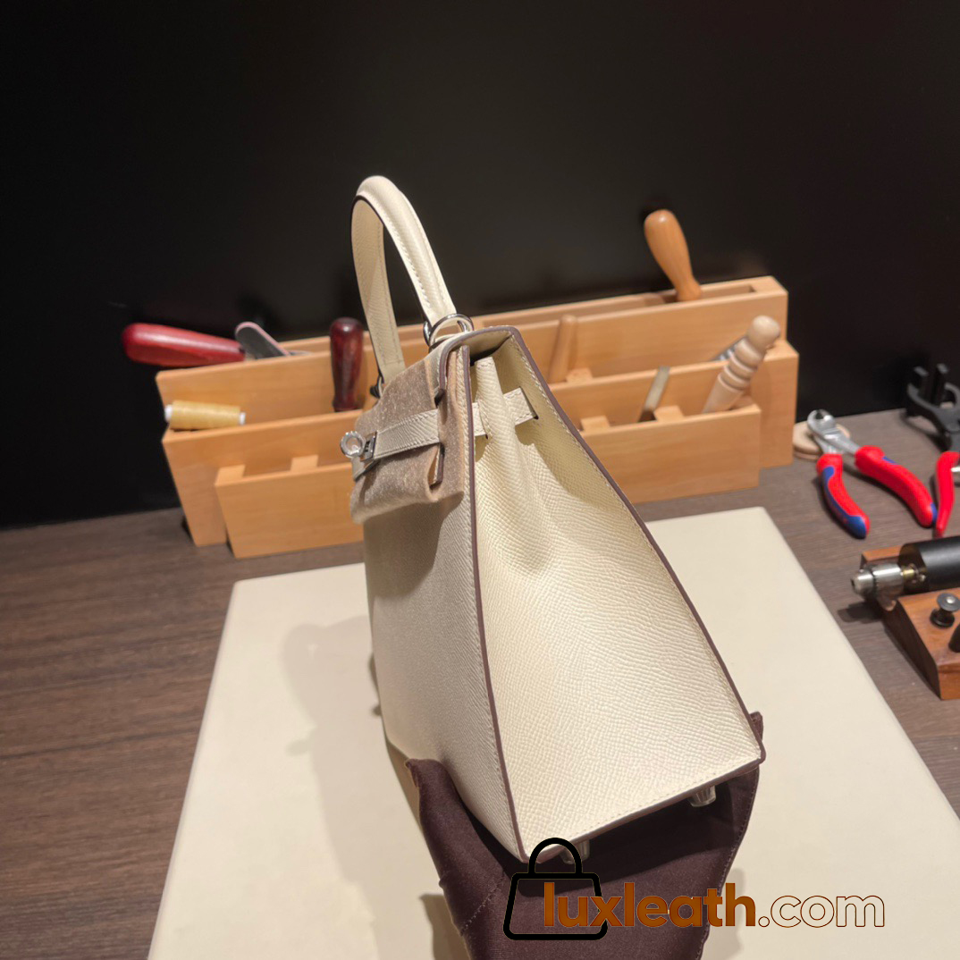 Hermes Kelly 25cm sellier Epsom I2 /Nata Silver Hardware Full Handmade 069
