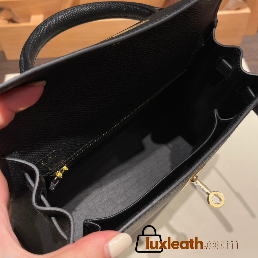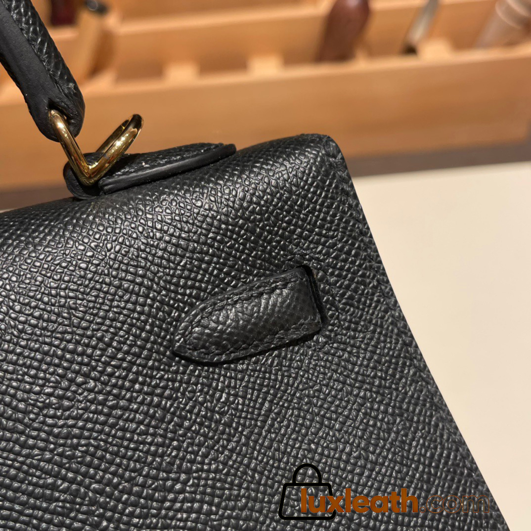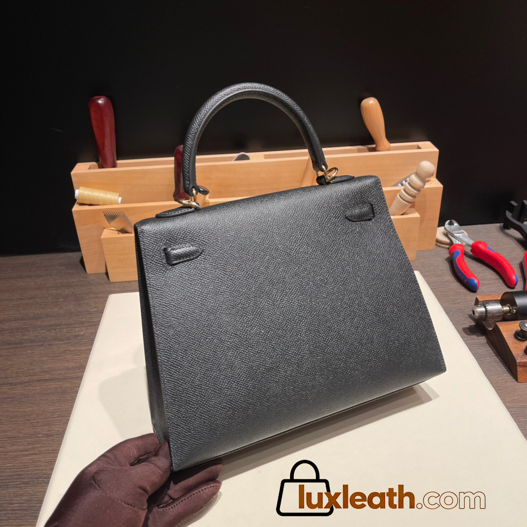 Hermes Kelly 25cm sellier Epsom 89 /Black (Noir) Gold Hardware Full Handmade 070