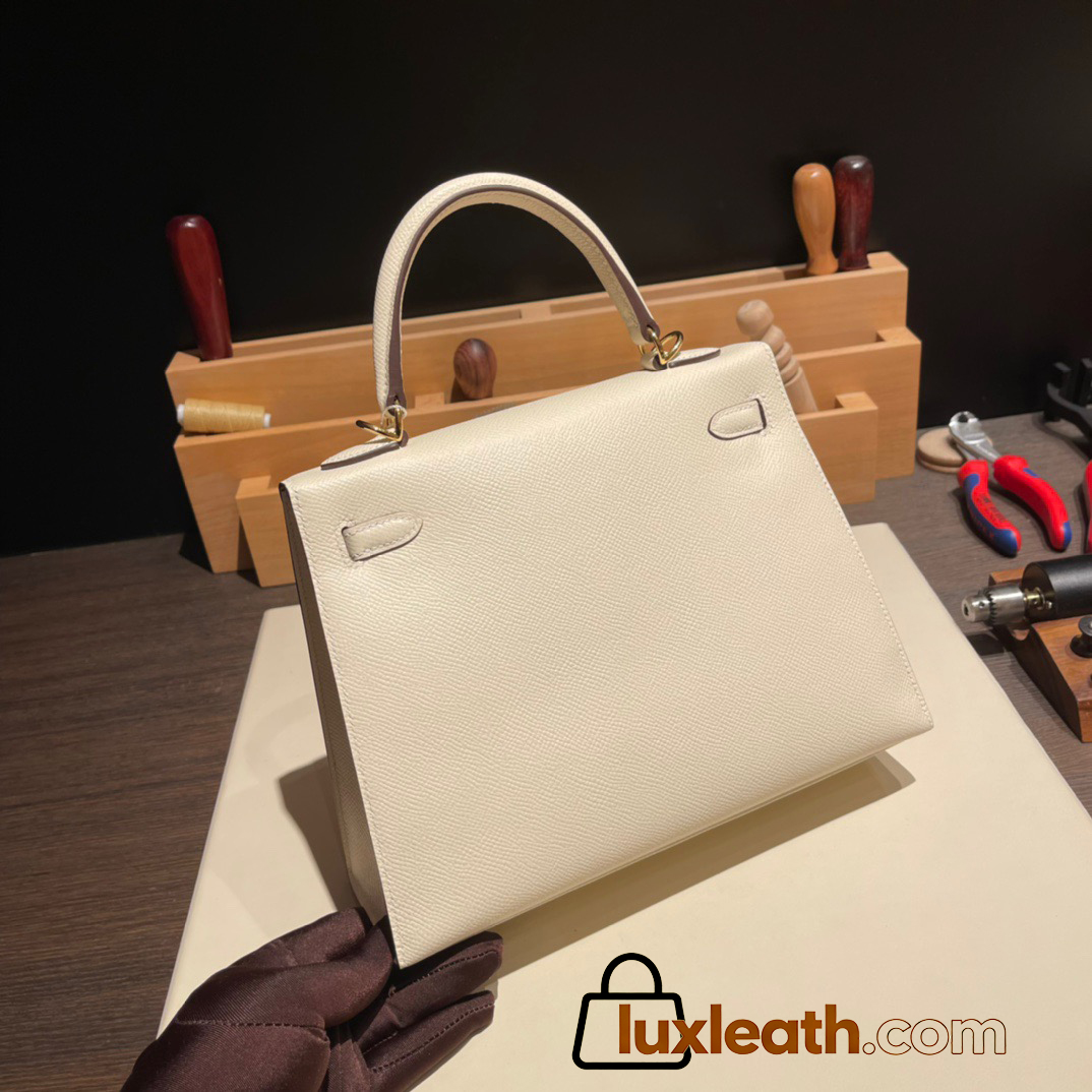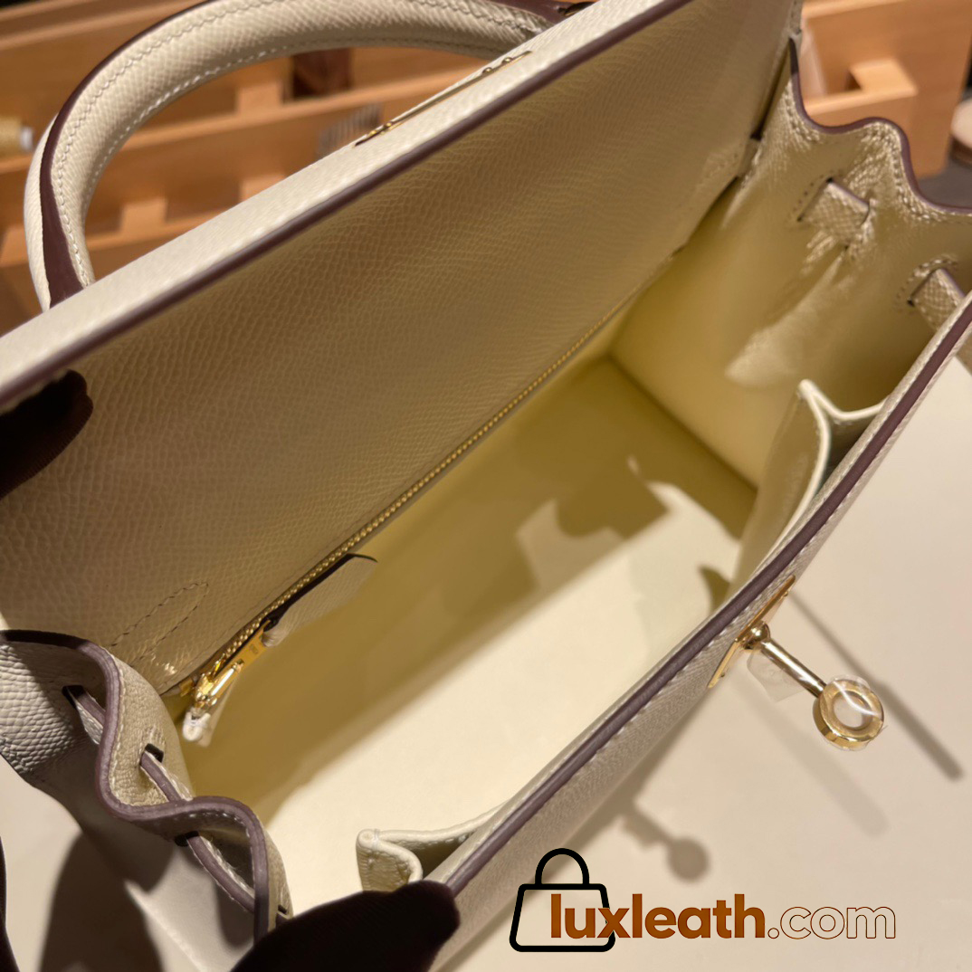 Hermes Kelly 25cm sellier Epsom I2 /Nata Gold Hardware Full Handmade 076