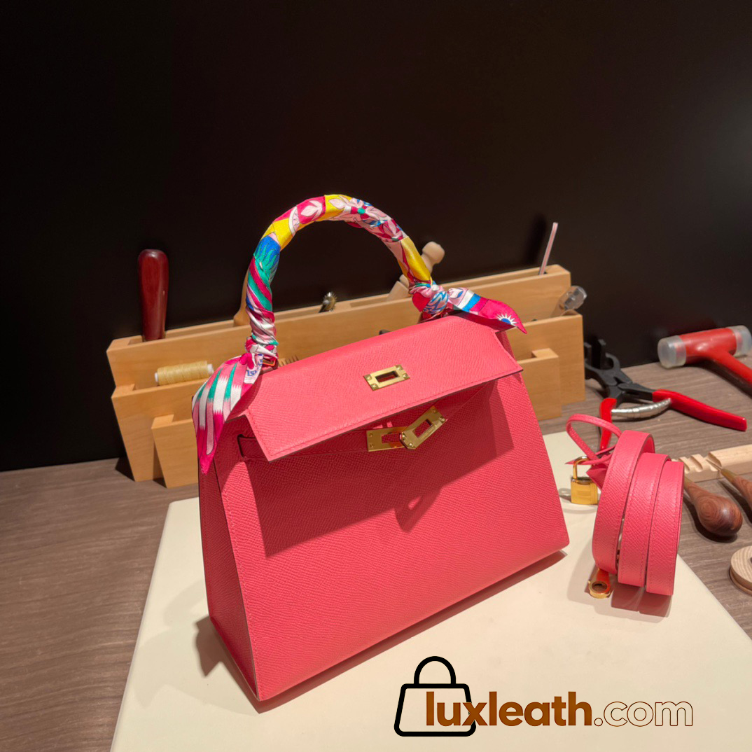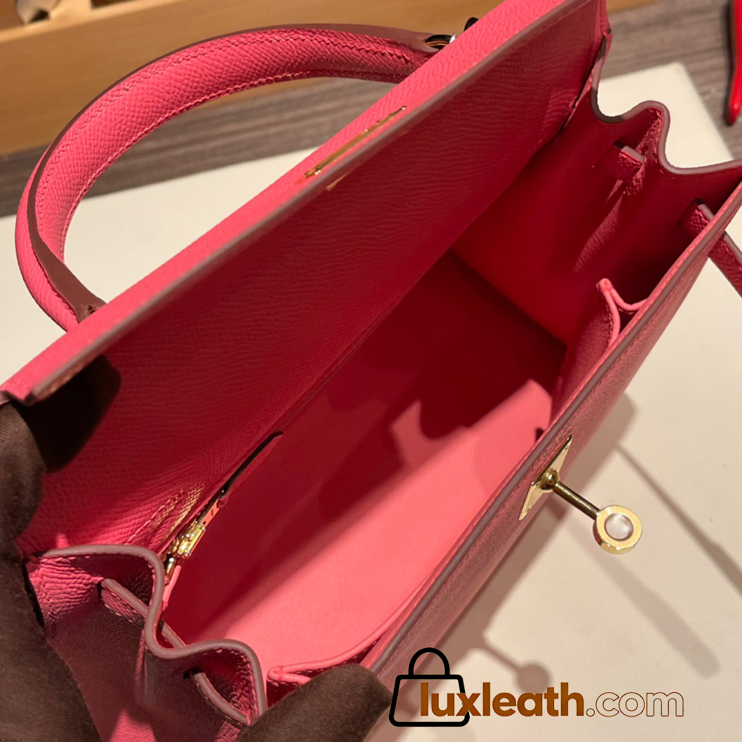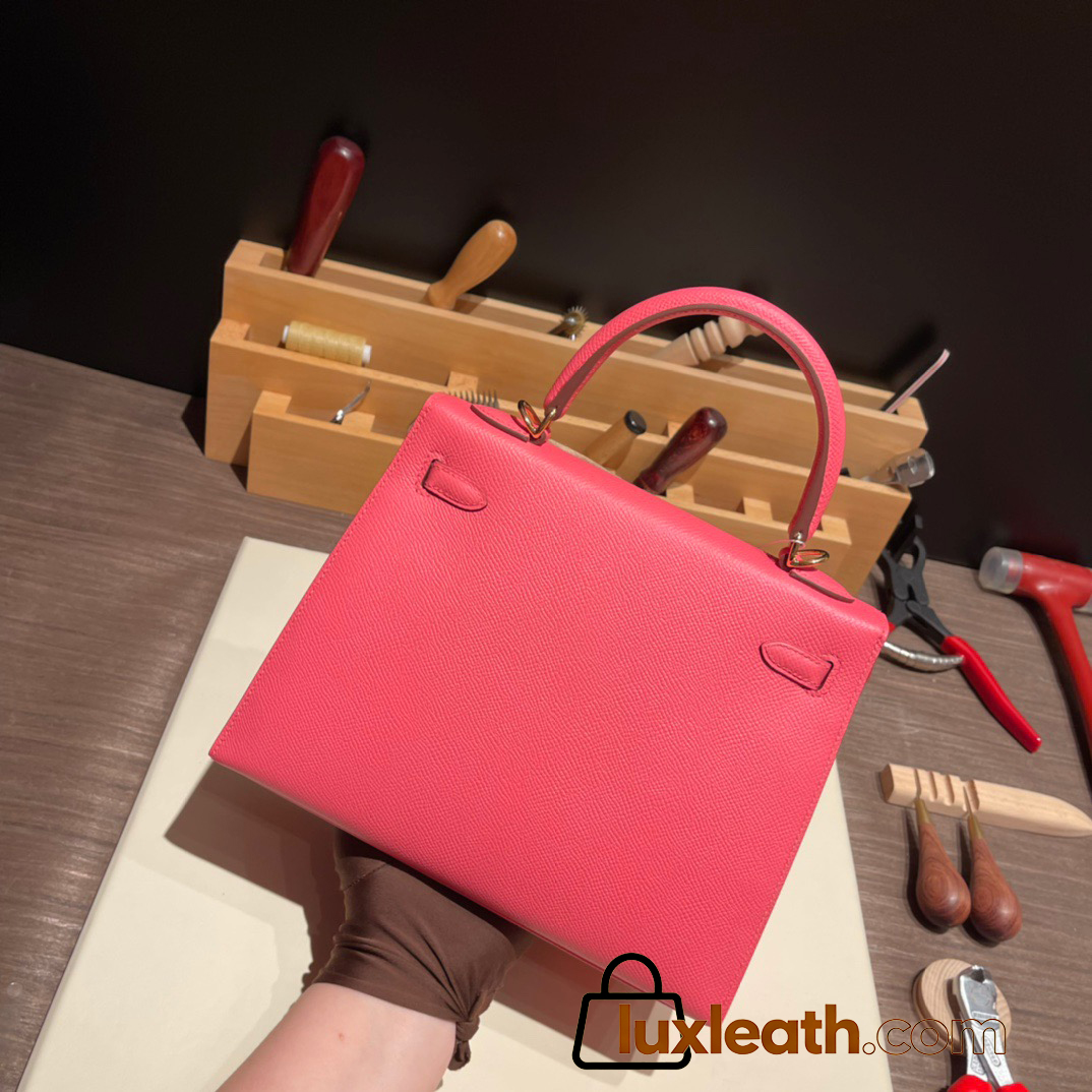 Hermes Kelly 25cm sellier Epsom U5 /Rose Lipstick Gold Hardware Full Handmade 078