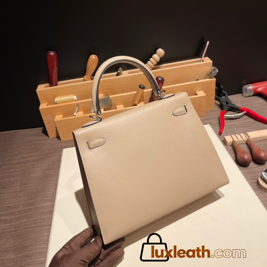 Hermes Kelly 25cm sellier Epsom S2/Trench Silver Hardware Full Handmade 080