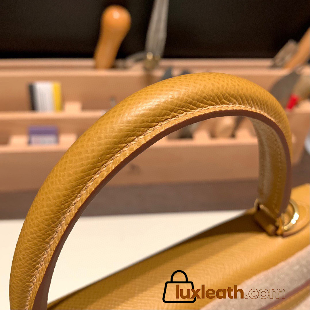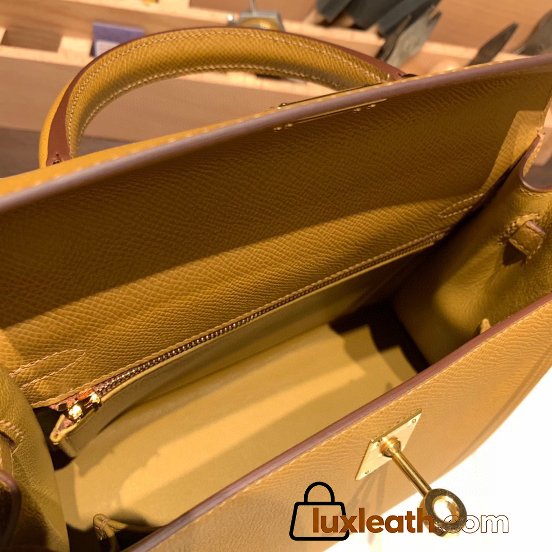 Hermes Kelly 25cm sellier Epsom 2S /Sesame Gold Hardware Full Handmade 088