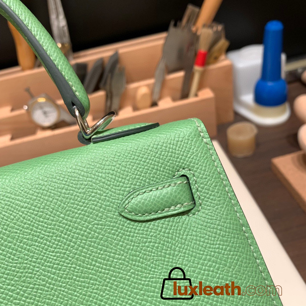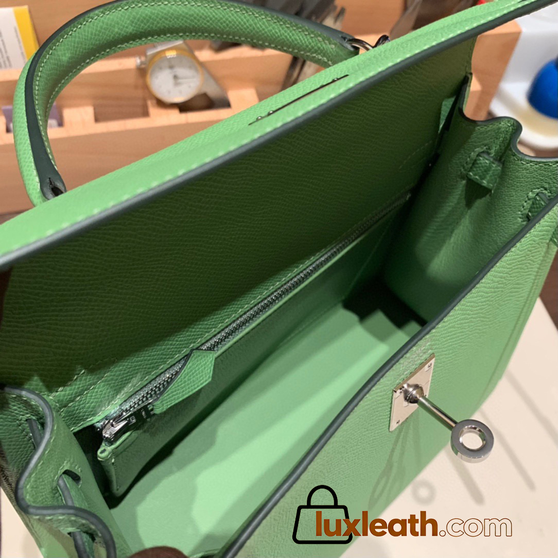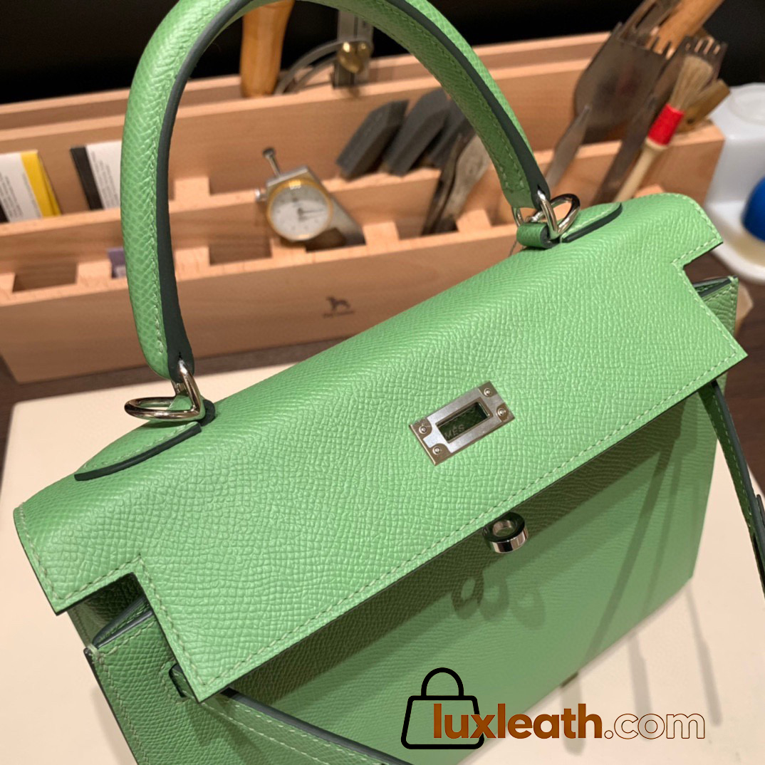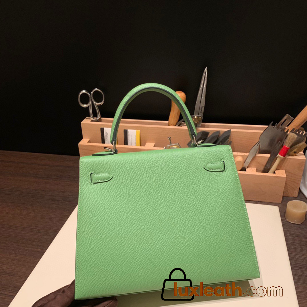 Hermes Kelly 25cm sellier Epsom 3I/Vert Criquet Silver Hardware  Full Handmade 101