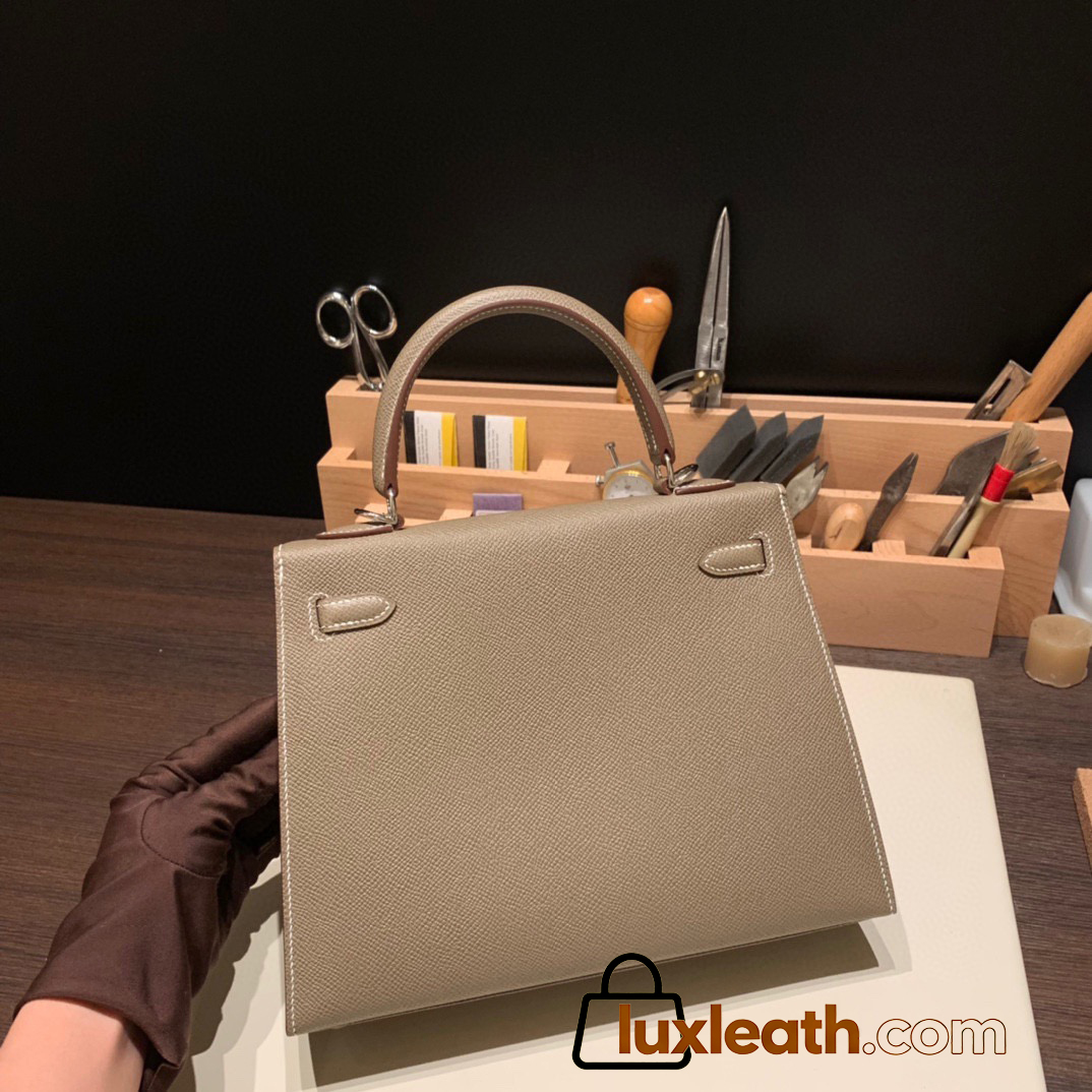 Hermes Kelly 25cm sellier Epsom 8C /Elephant Grey Silver Hardware Full Handmade 104