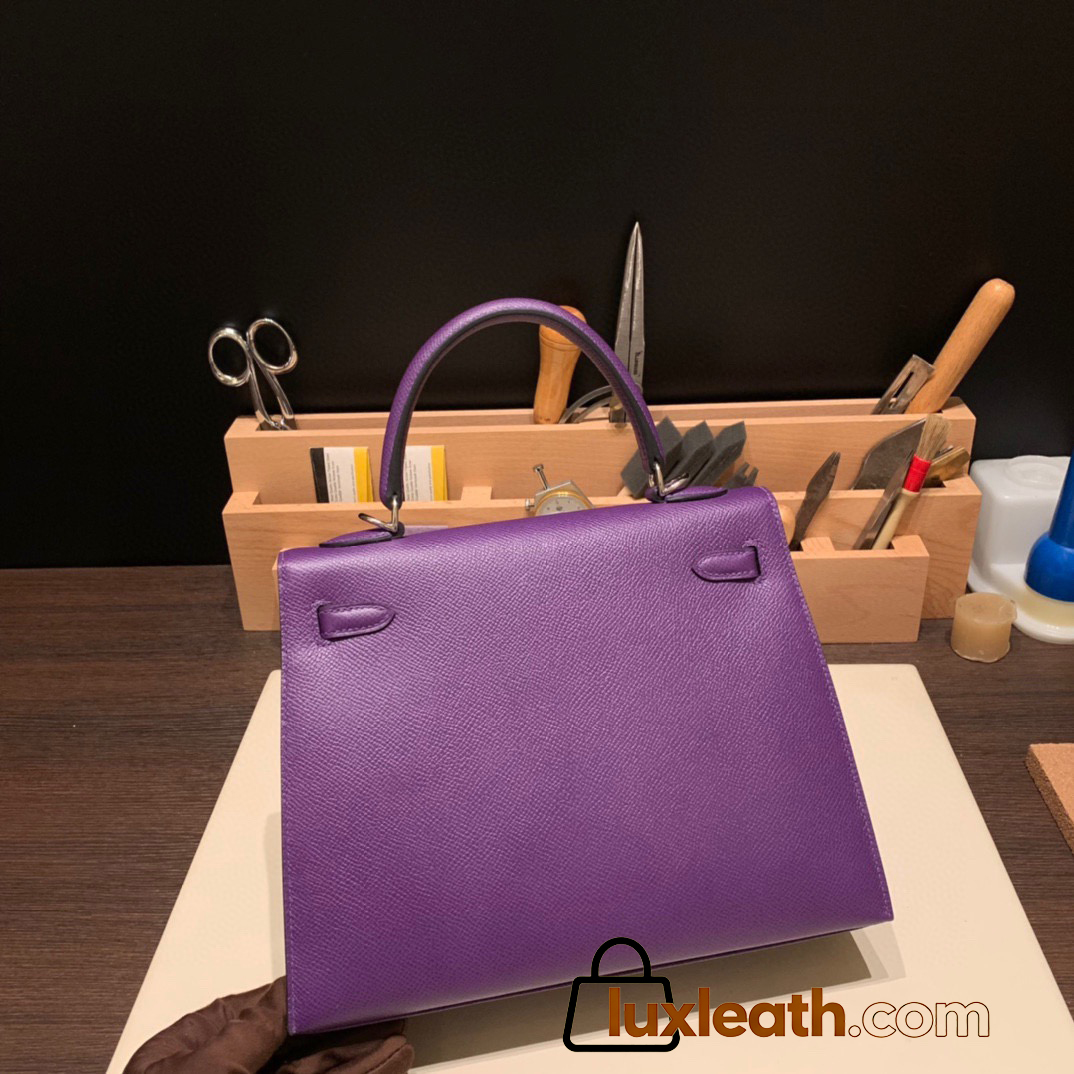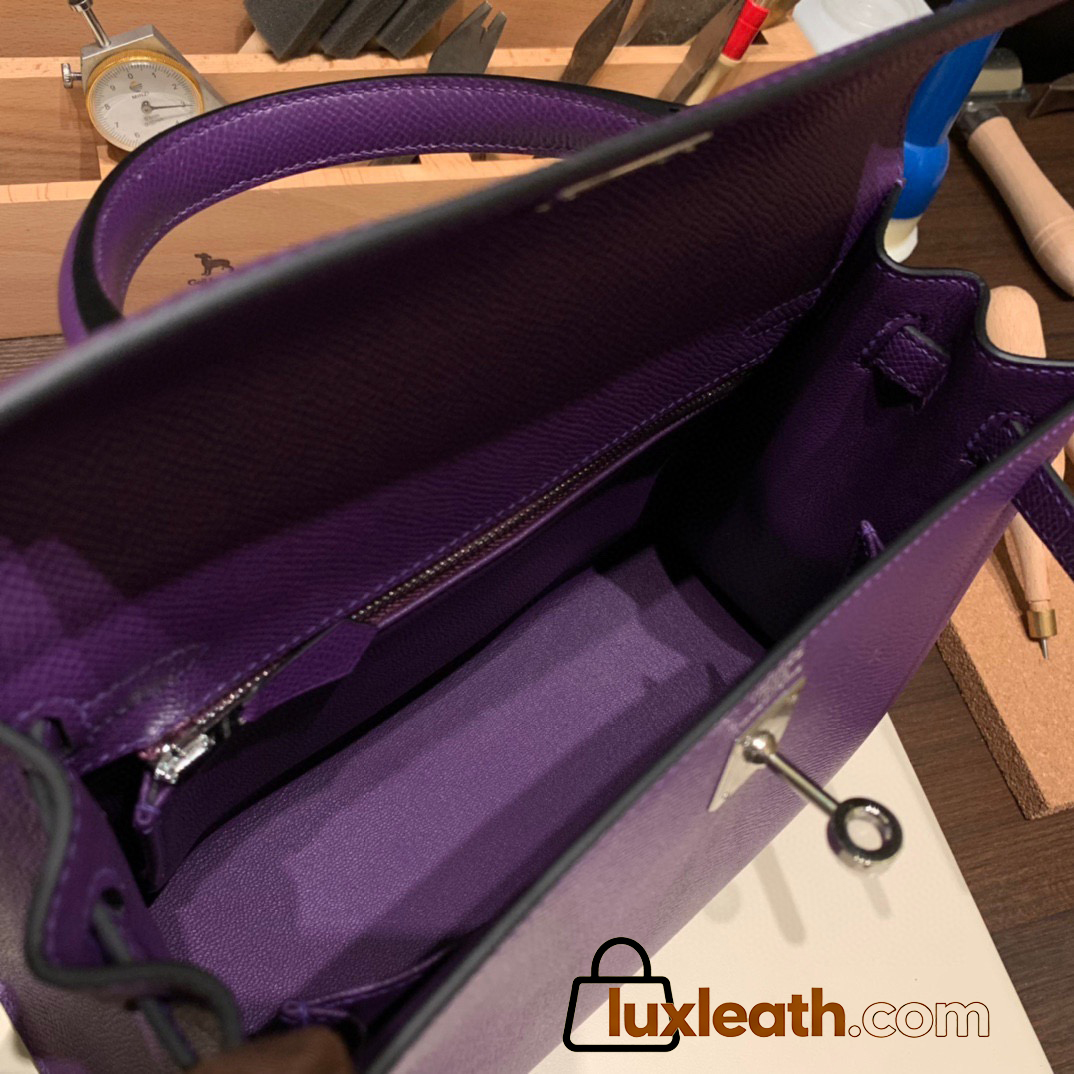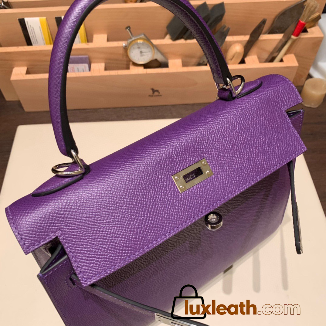 Hermes Kelly 25cm sellier Epsom 9W /Crocus Silver Hardware Full Handmade 105