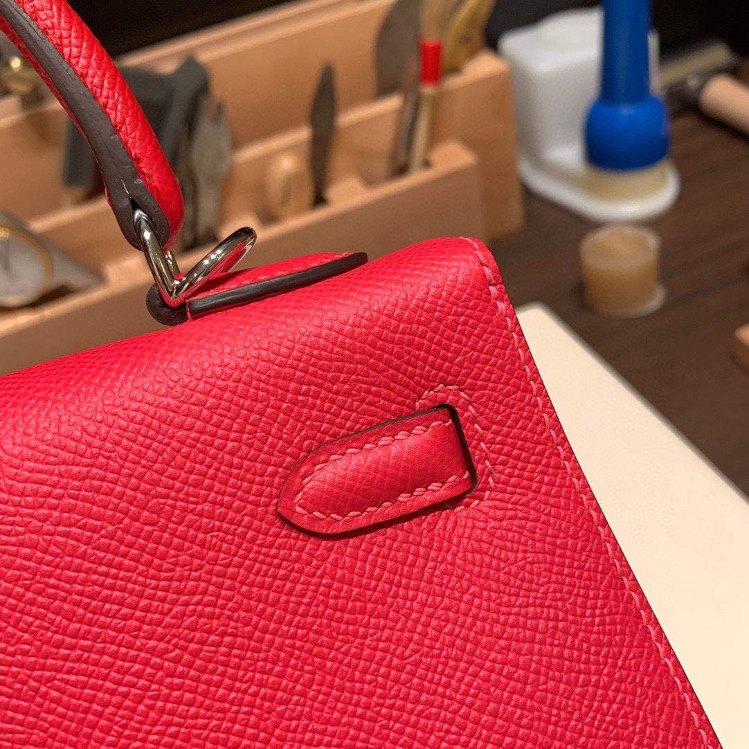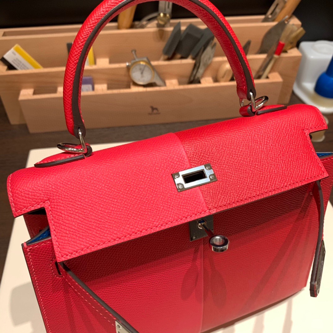 Hermes Kelly 25cm sellier Epsom S3/Rouge Cœur & I6 /Rose Extreme & B3 /Blue Zanzibar  112