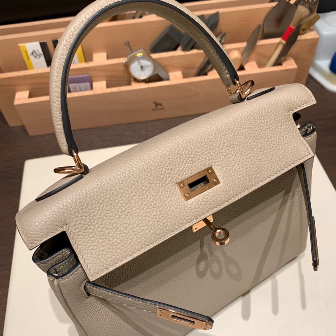 Hermes Kelly 25cm togo 81 / Gris Tourterelle Rosegold Hardware Full Handmade 119
