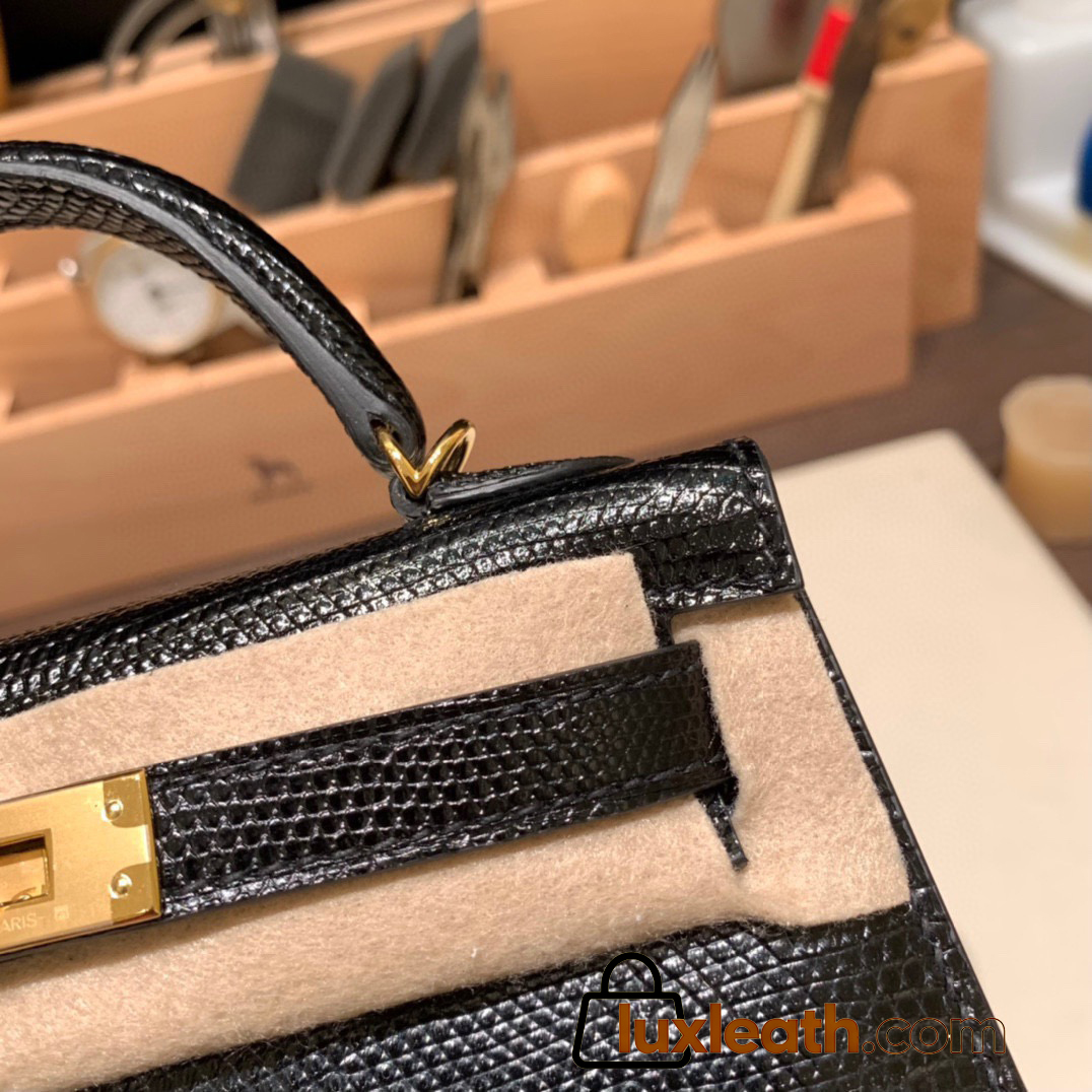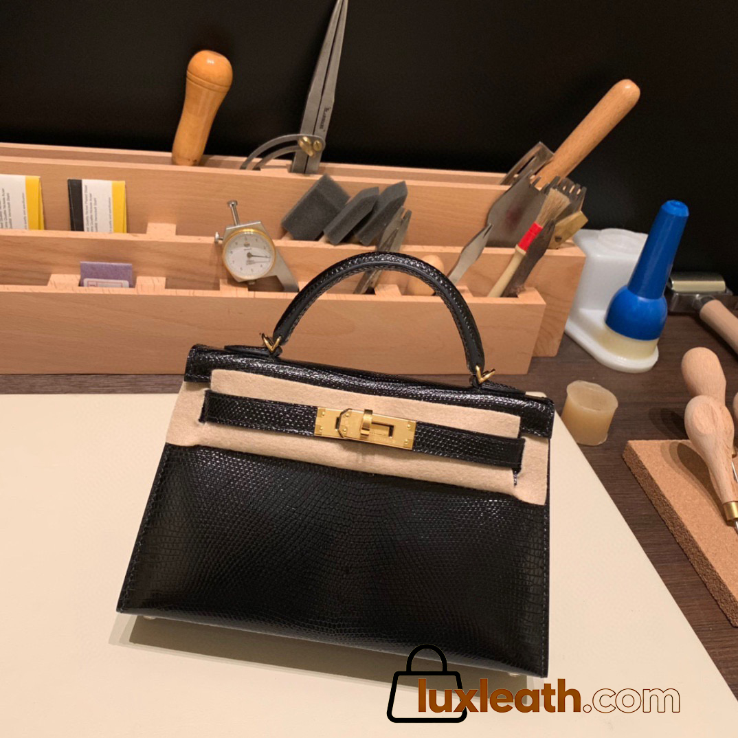 kelly20 Mini Kelly New stock 89 /Black (Noir) Gold Hardware Full Handmade kellymini-005