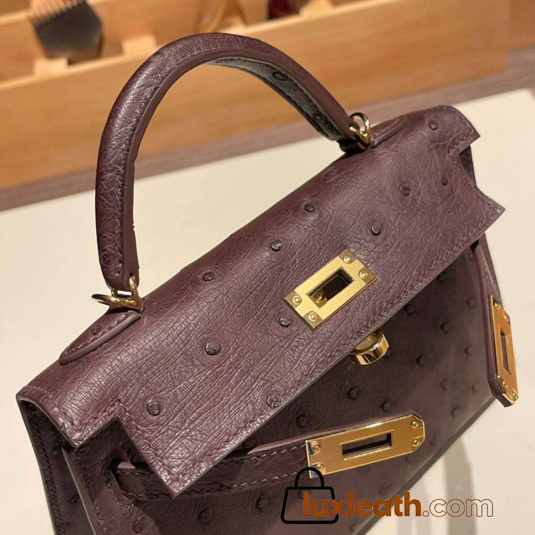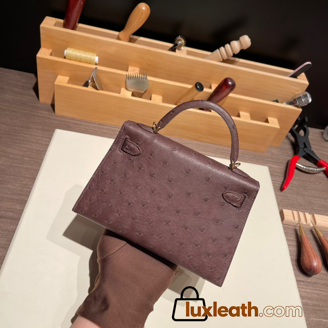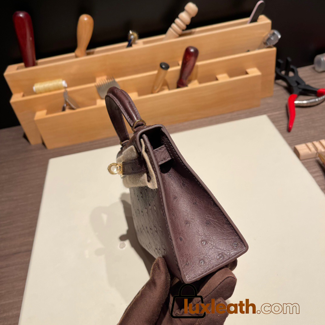 Hermes kelly20 ostrich 19cm 46 /Ebene Gold Hardware Full Handmade kellymini-015