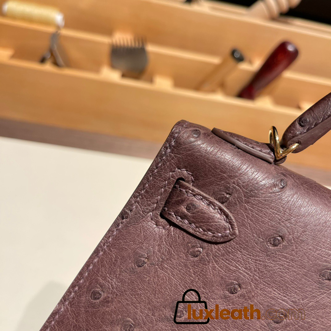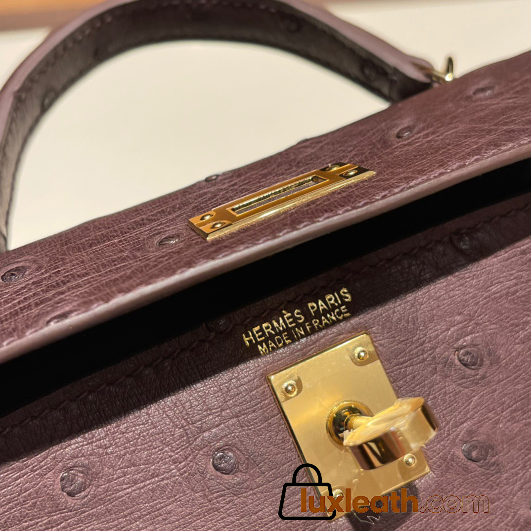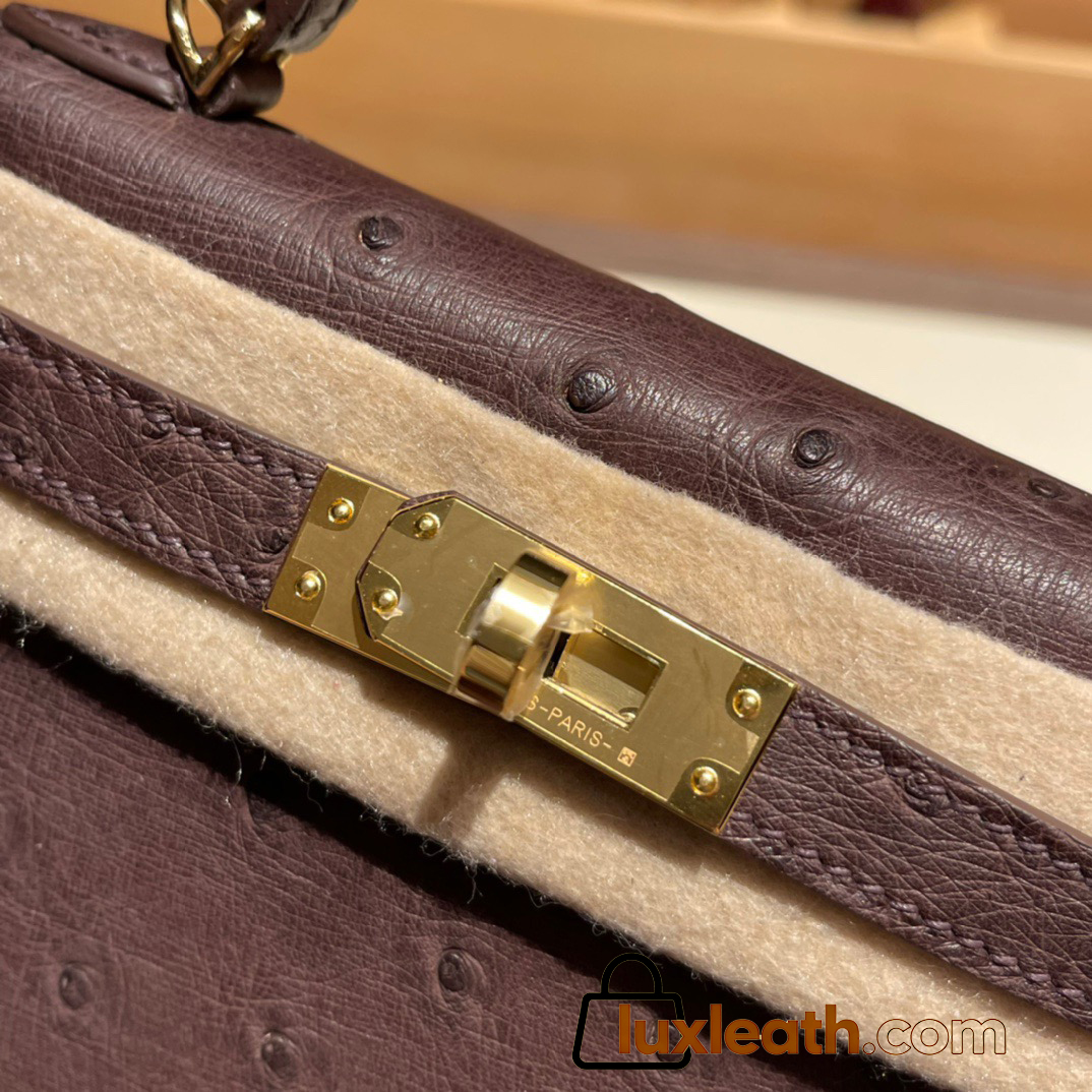 Hermes kelly20 ostrich 19cm 46 /Ebene Gold Hardware Full Handmade kellymini-015