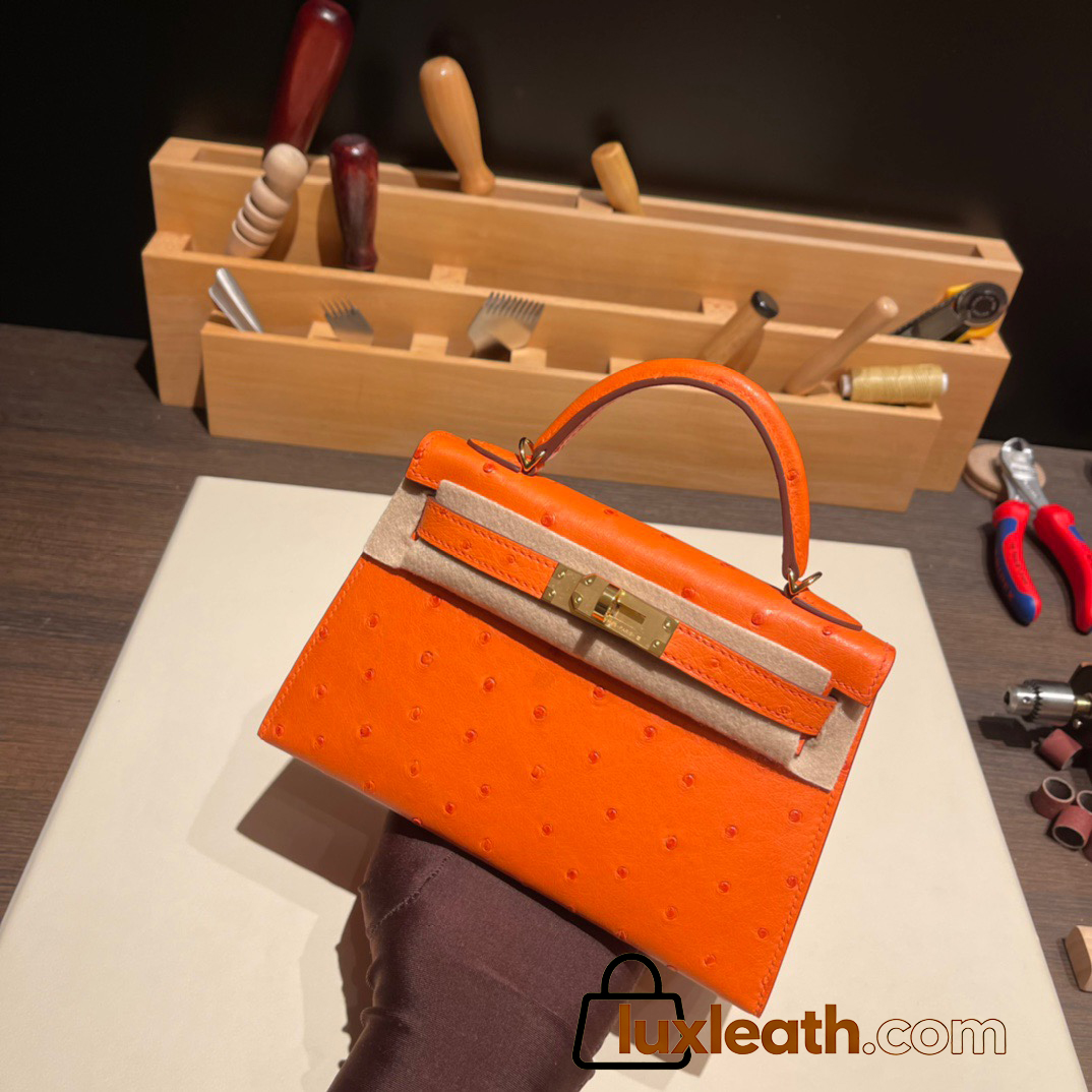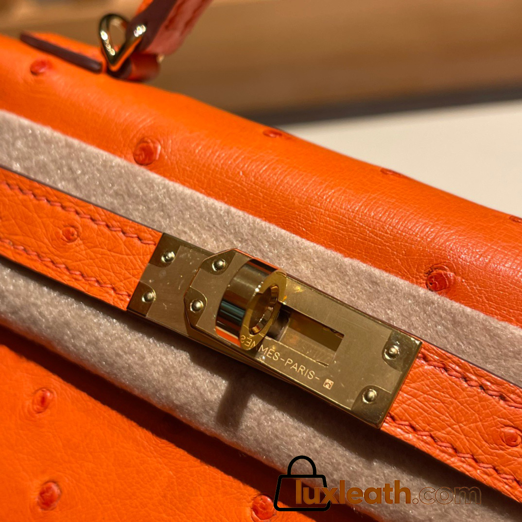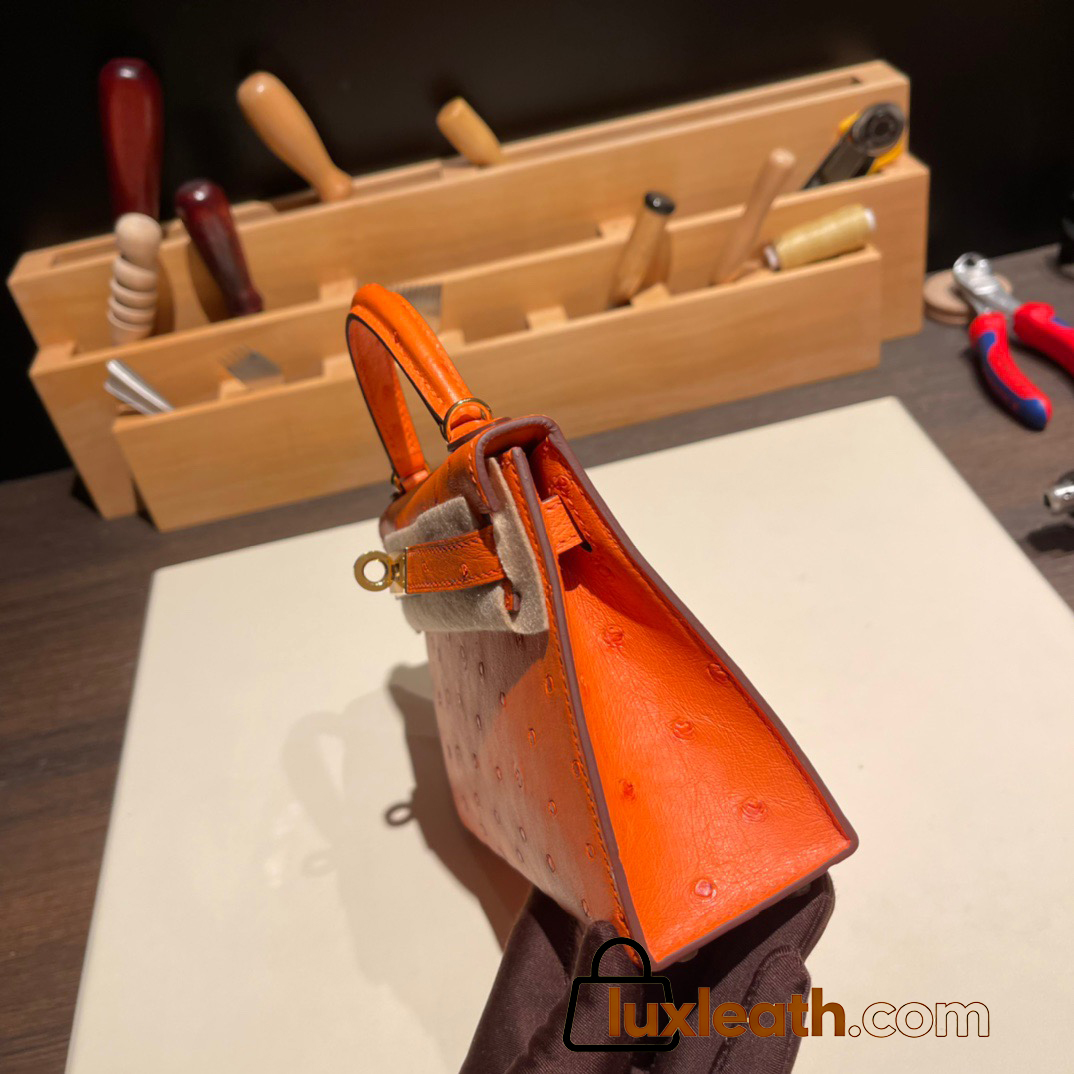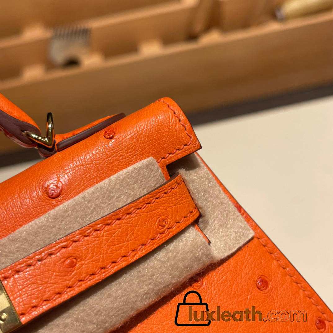 Hermes kelly20 ostrich 19cm 93 /Orange Gold Hardware Full Handmade kellymini-025