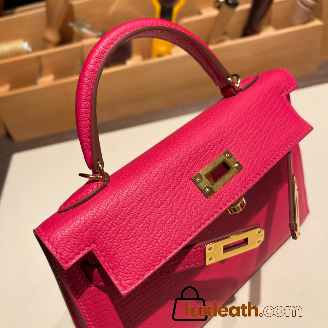 Hermes kelly20 chevre19cm I6 /Rose Extreme Gold Hardware  Full Handmade kellymini-031
