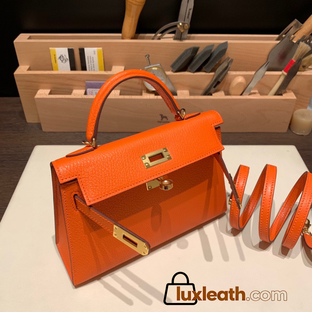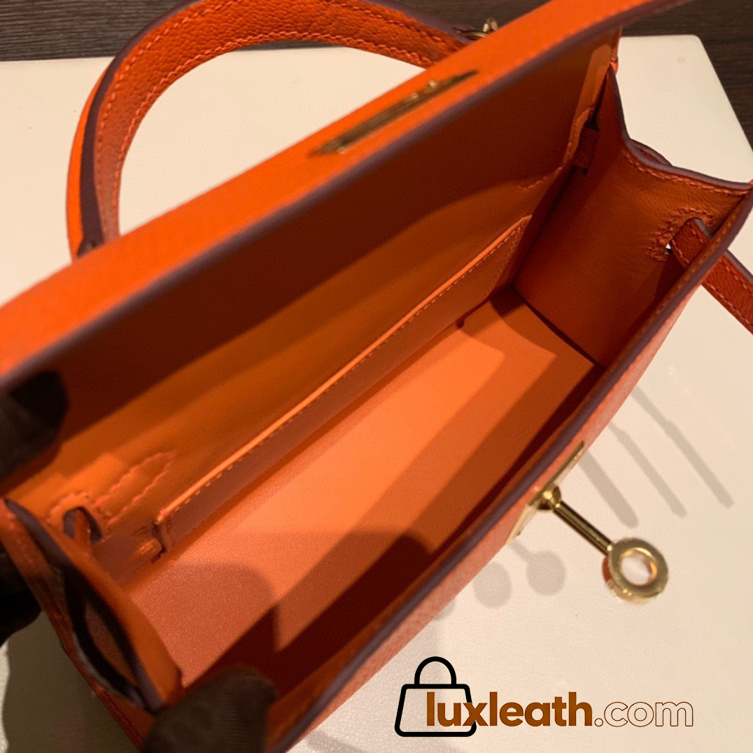 Hermes kelly20 chevre 19cm93 /Orange Gold Hardware Full Handmade kellymini-035