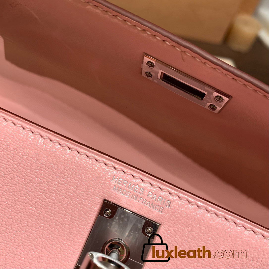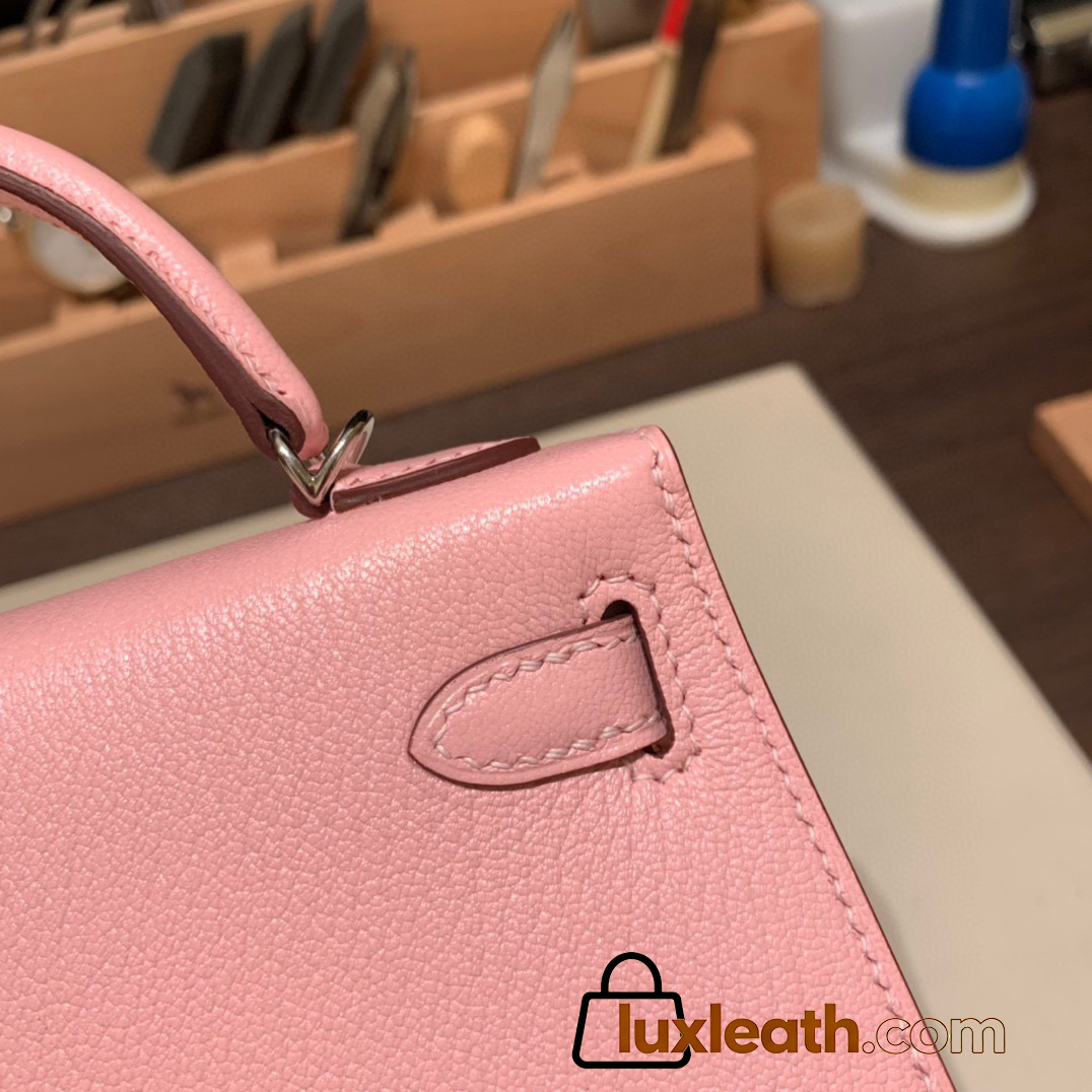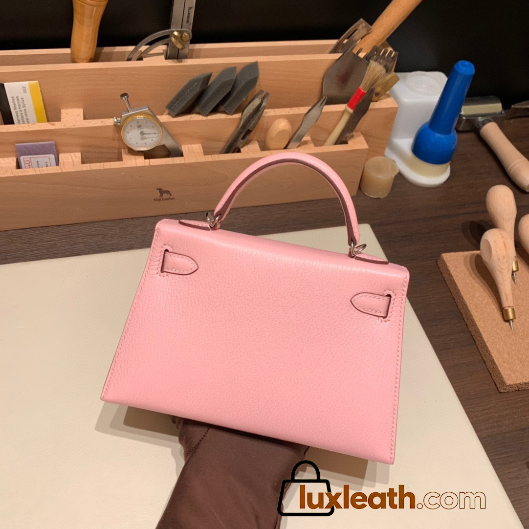Hermes kelly20 chevre 19cm 3Q /Rose Sakura Silver Hardware Full Handmade kellymini-037