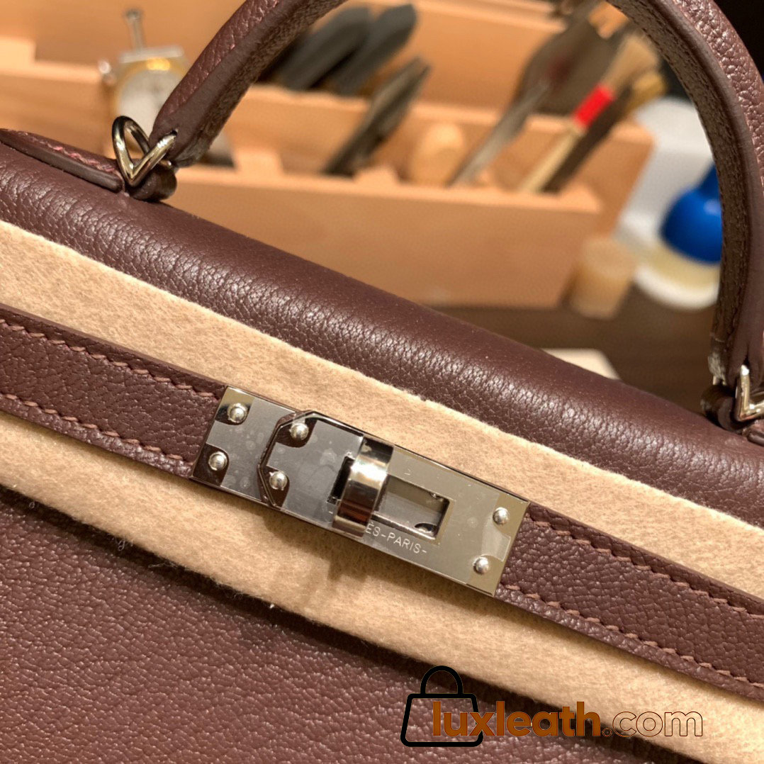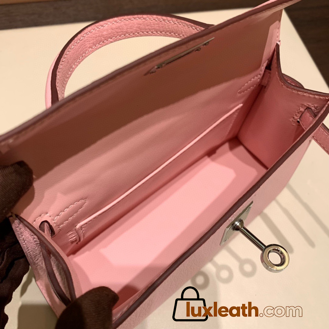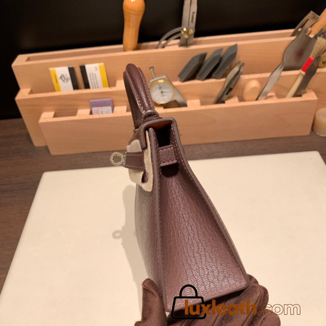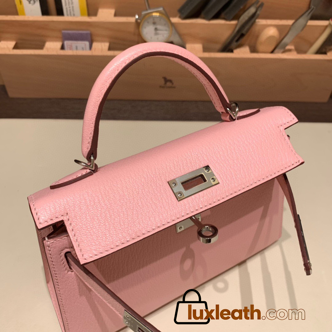 Hermes kelly20 chevre 19cm 3Q /Rose Sakura Silver Hardware Full Handmade kellymini-037