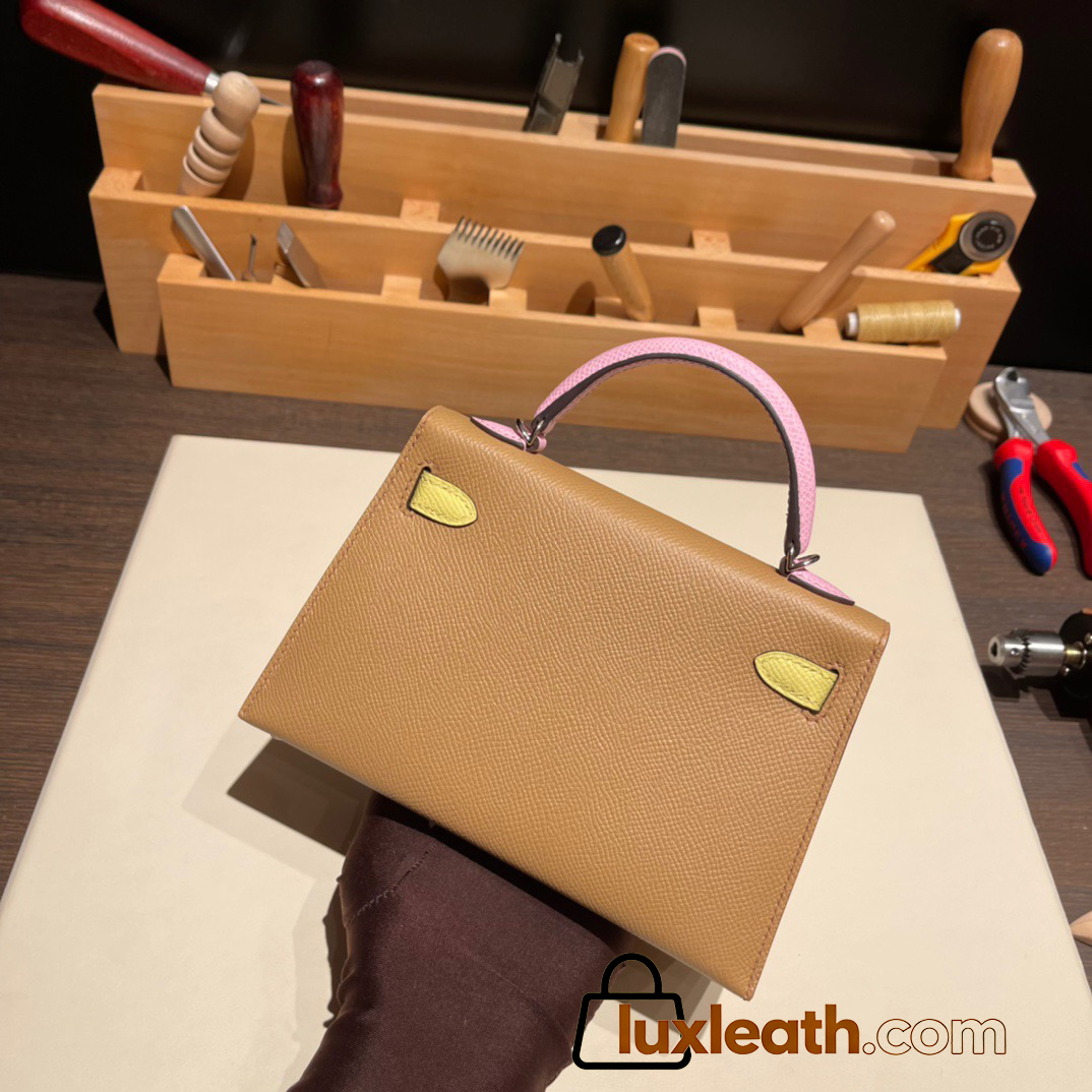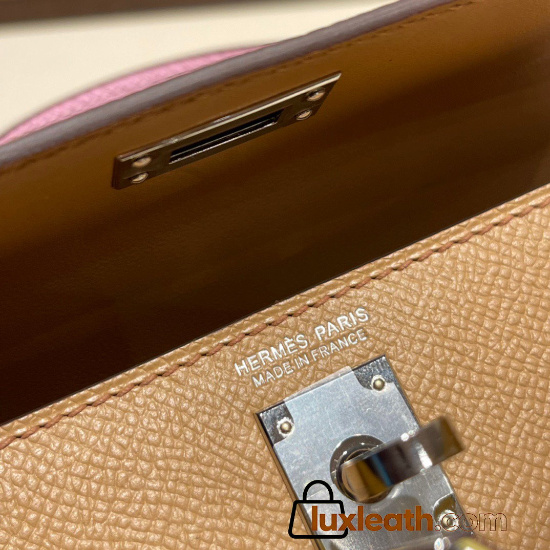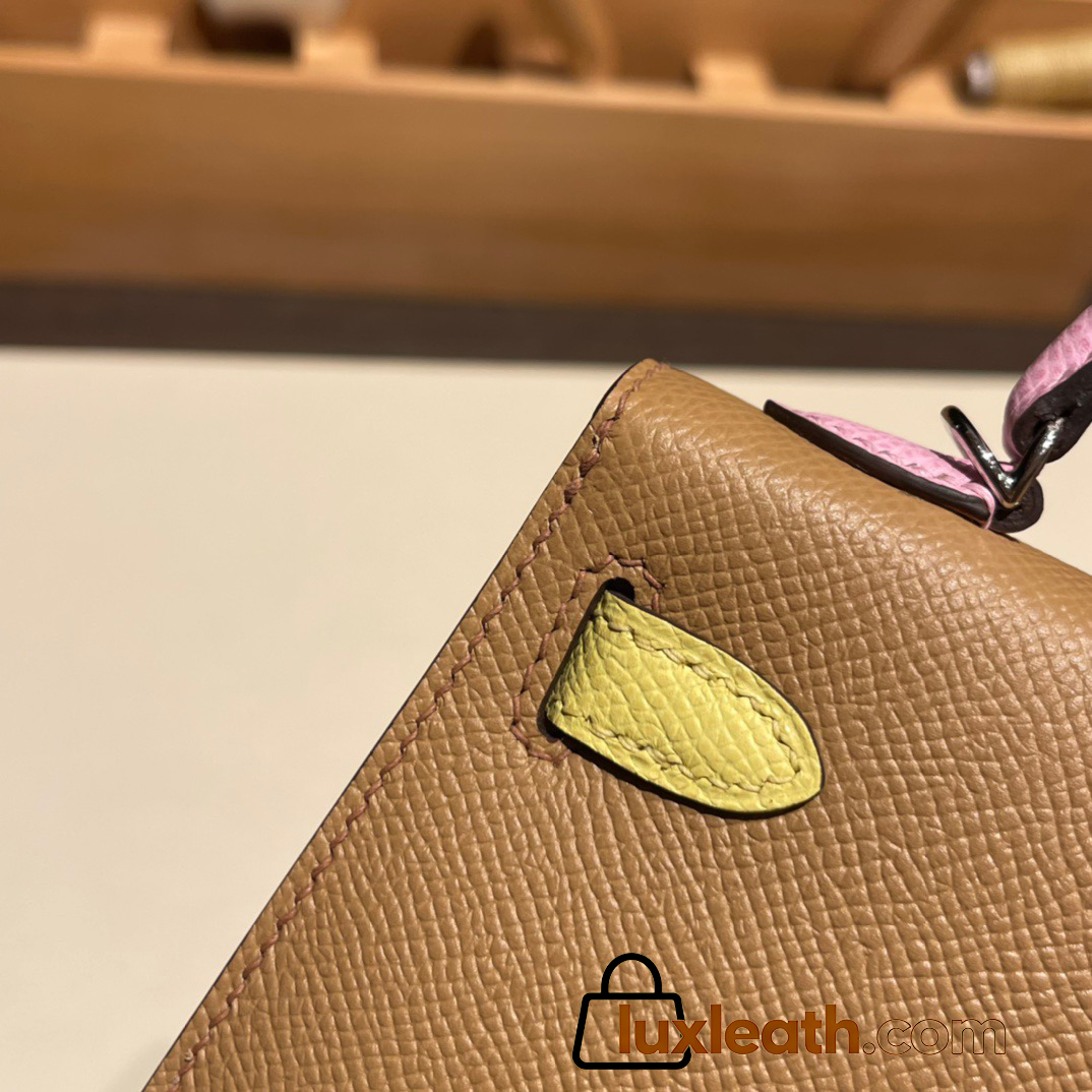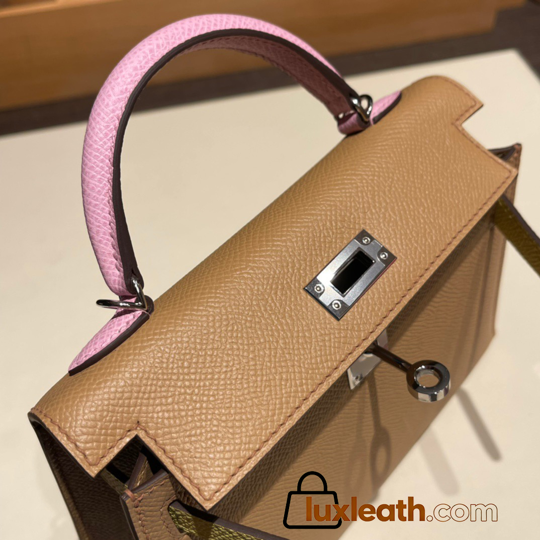 Hermes kelly20 epsom19cm 0M/Cha & 9R/Lime & X9 /Mauve Sylvestre Silver Hardware Full Handmade kellymini-057