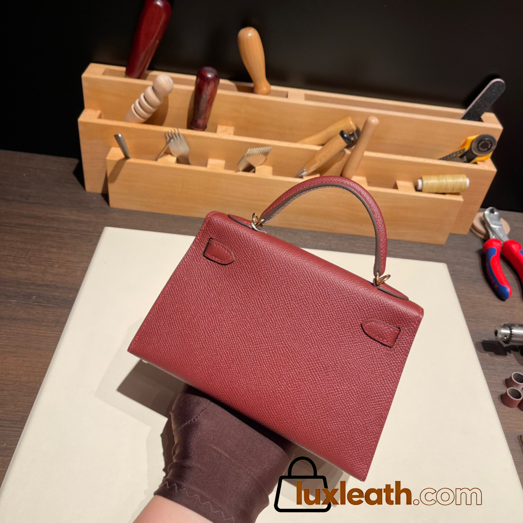 Hermes kelly20 epsom19cm 55/ Rouge H Gold Hardware Full Handmade kellymini-061