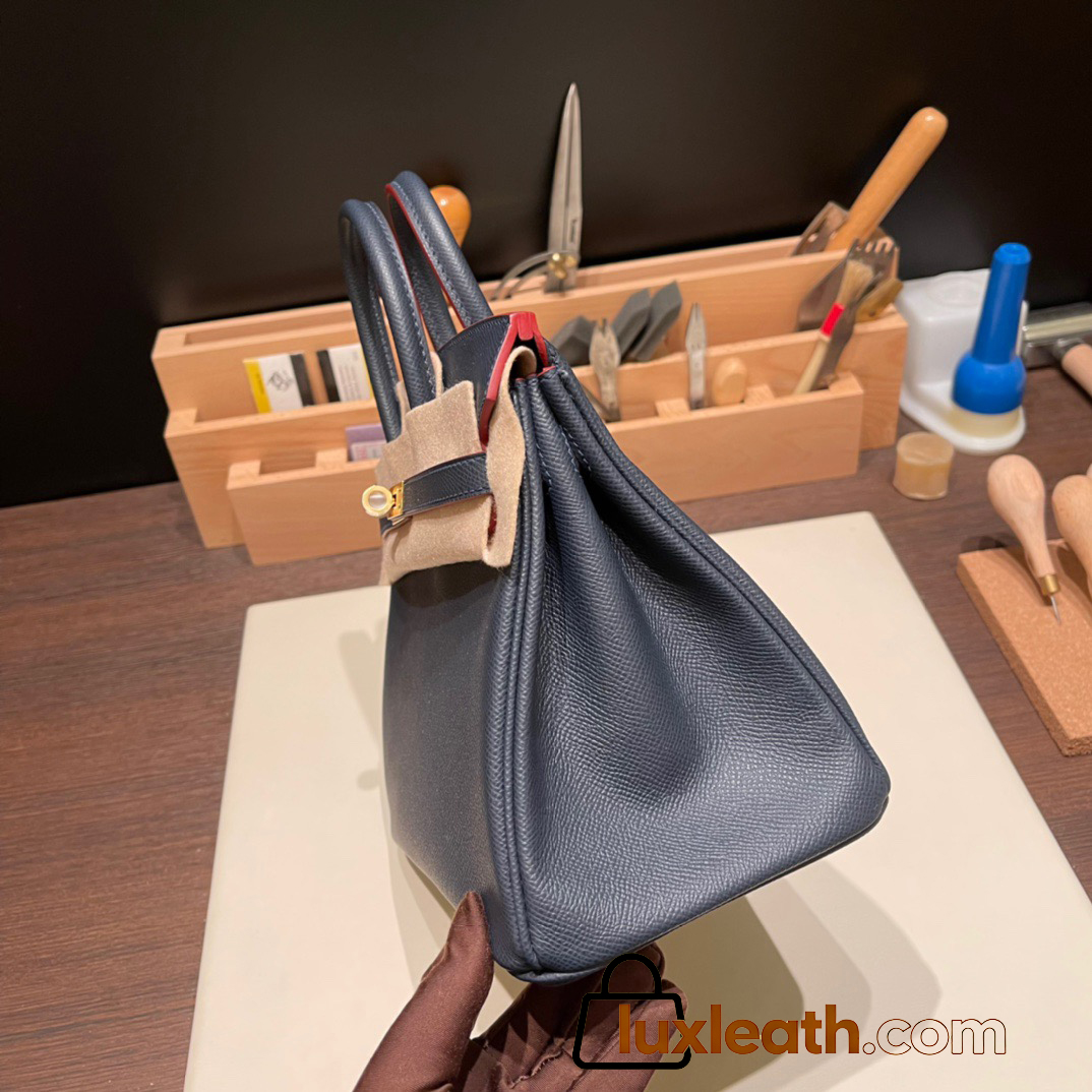 Hermes Birkin 25cm Epsom C6 /Vert Gris Gold Hardware Full Handmade 045