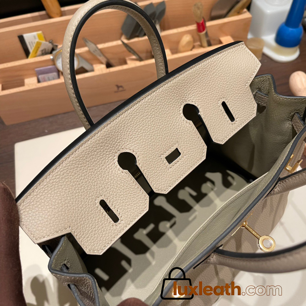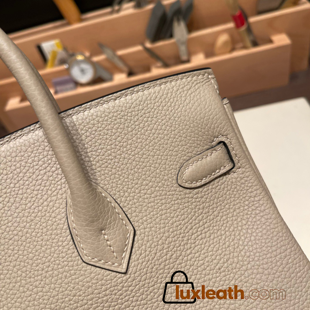 Hermes Birkin 25cm togo 10/ Craie & Étoupe Grey Silver Hardware Full Handmade 145