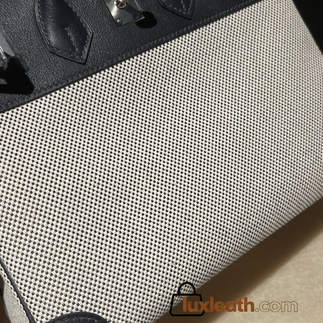25cm Birkin (Canvas & Swift Leather) – Color: 2Z/Blue Nuit – The canvas part gives a youthful impression and is lighter than full-leather versions.
