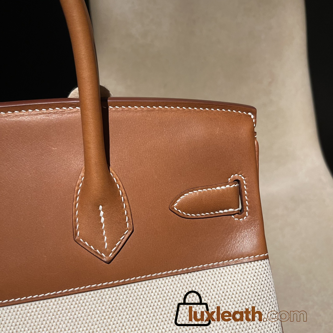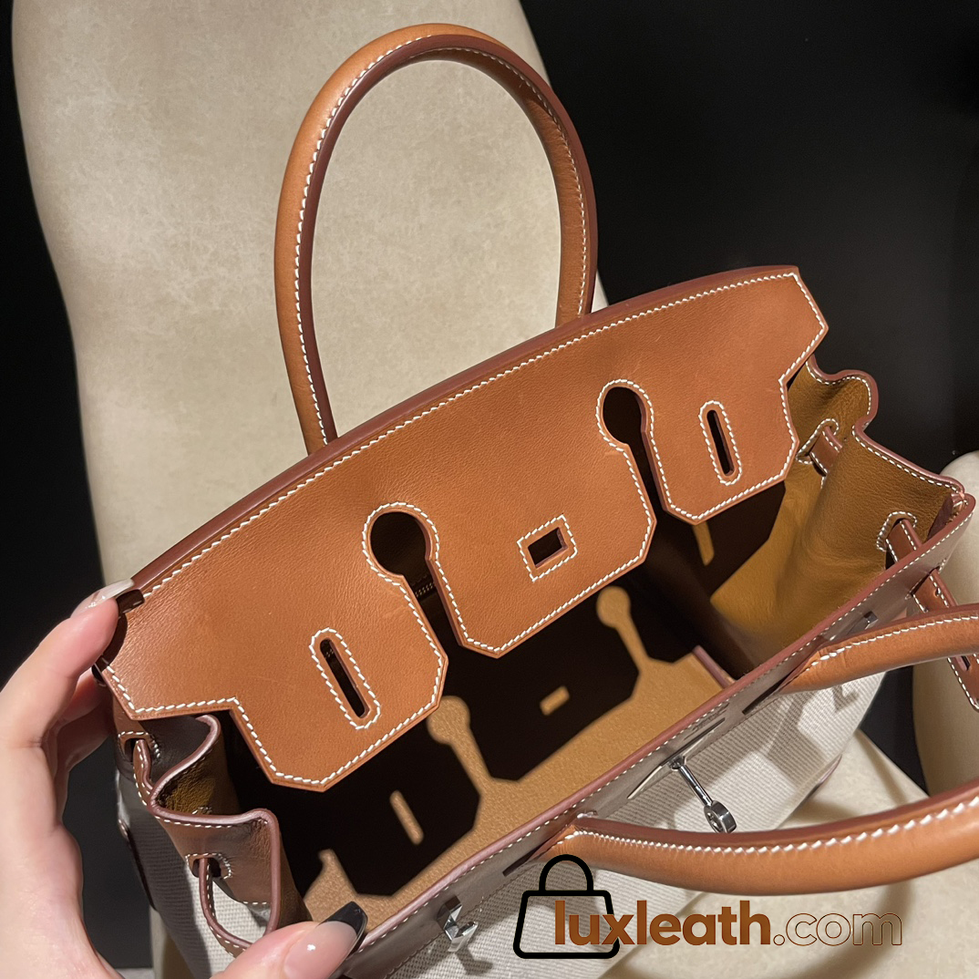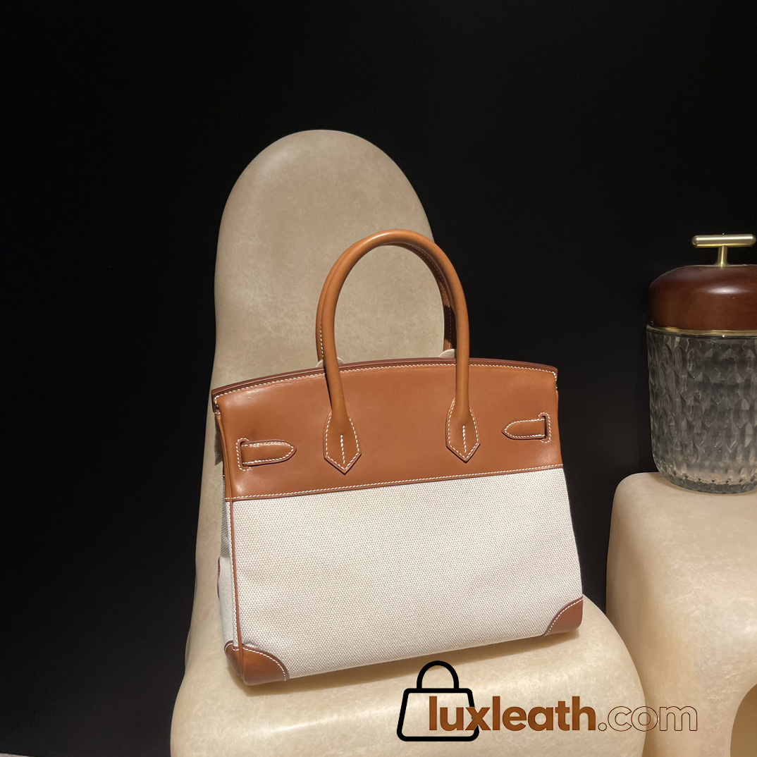Hermès Birkin 30 (Canvas & Barenia Leather) – Color: 37/Gold with Gold Hardware – The youthfulness brought by the canvas and the luxury of Barenia leather blend beautifully – a rare specification that is lighter and easier to use than full-leather models.