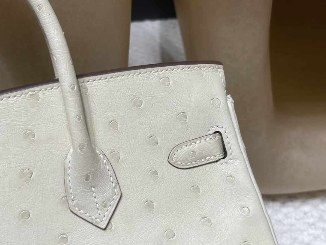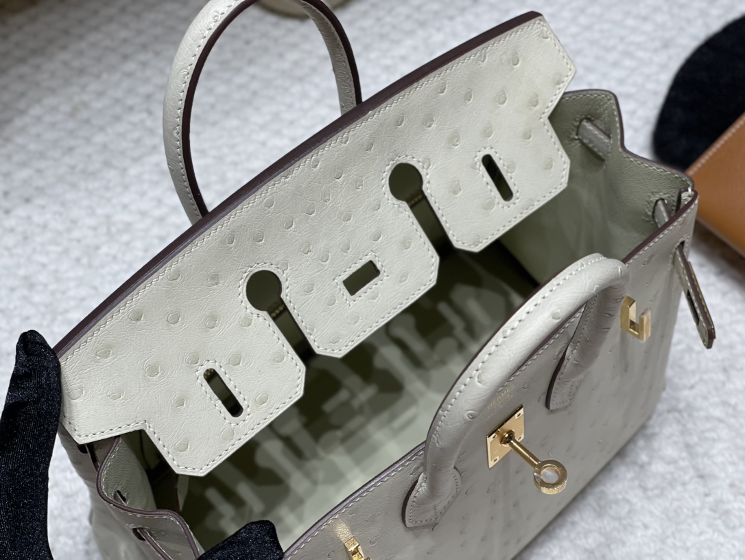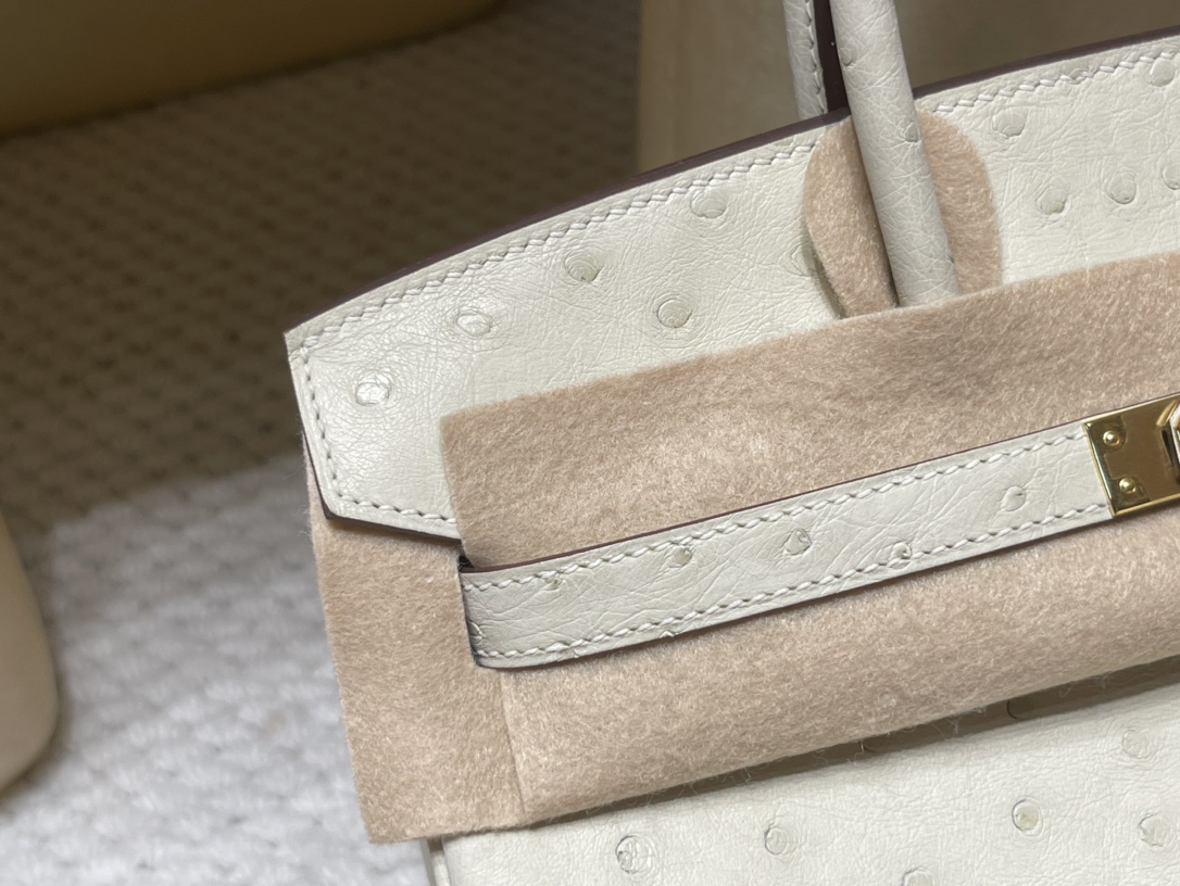 Hermès Birkin Ostrich 25cm High-End Custom-Made Birkin 25cm South African KK Ostrich Parchemin|A color tone with the finest beauty and elegance among ostrich white-based colors! Gold Hardware