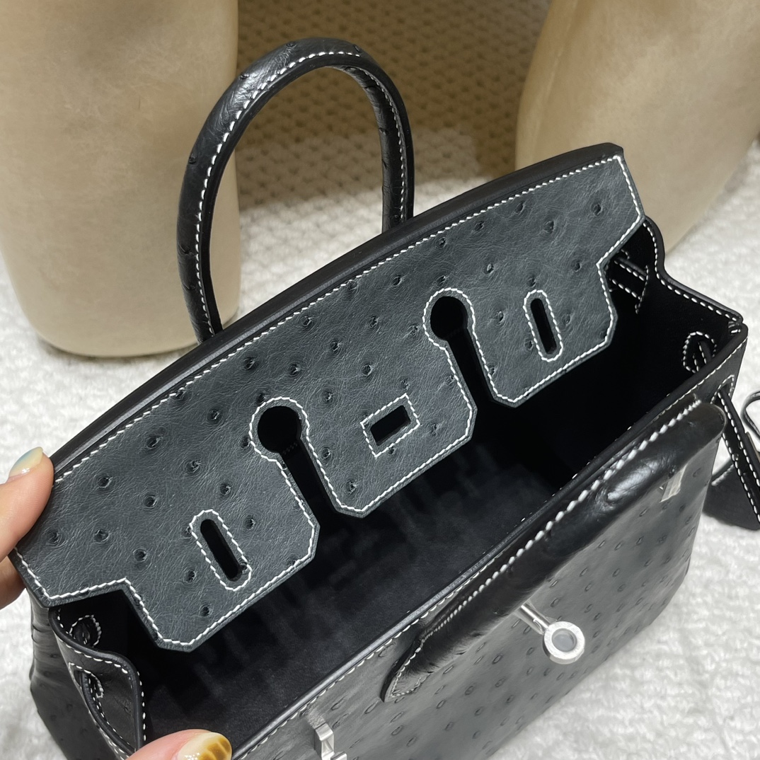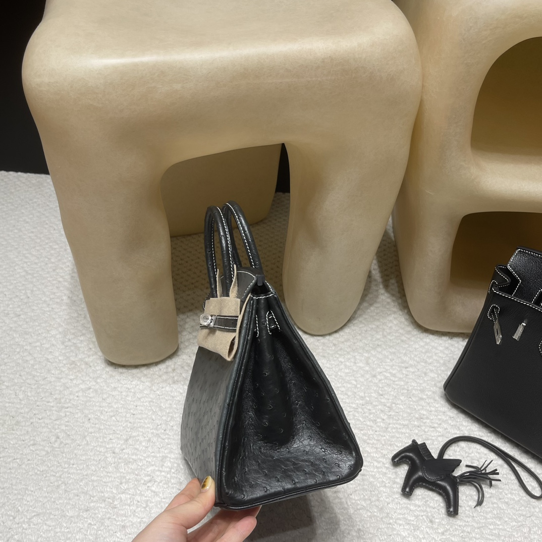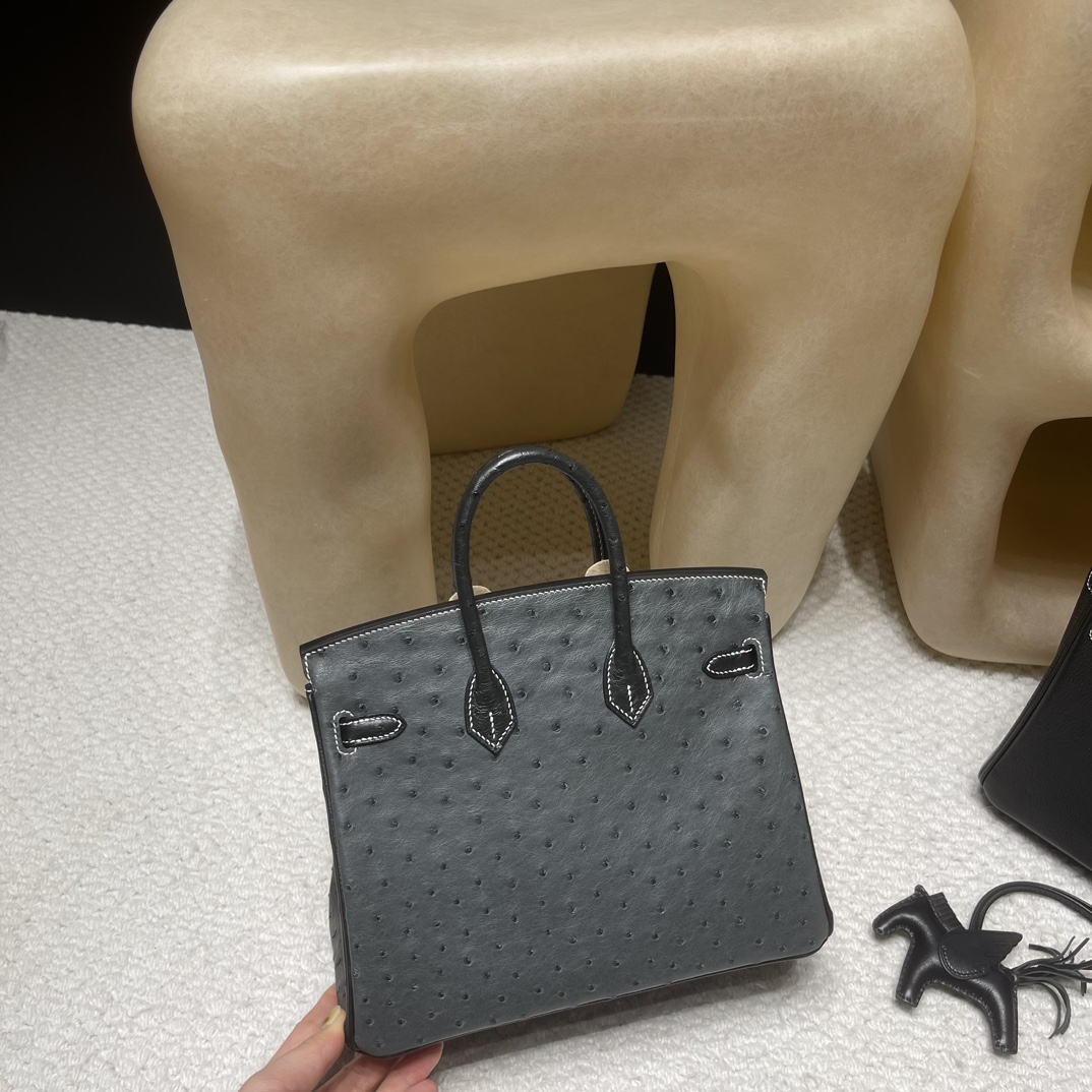 88/Graphite & 89/Black (Noir) Frosted Silver Hardware High-End Custom-Made 25 Birkin South African KK Ostrich