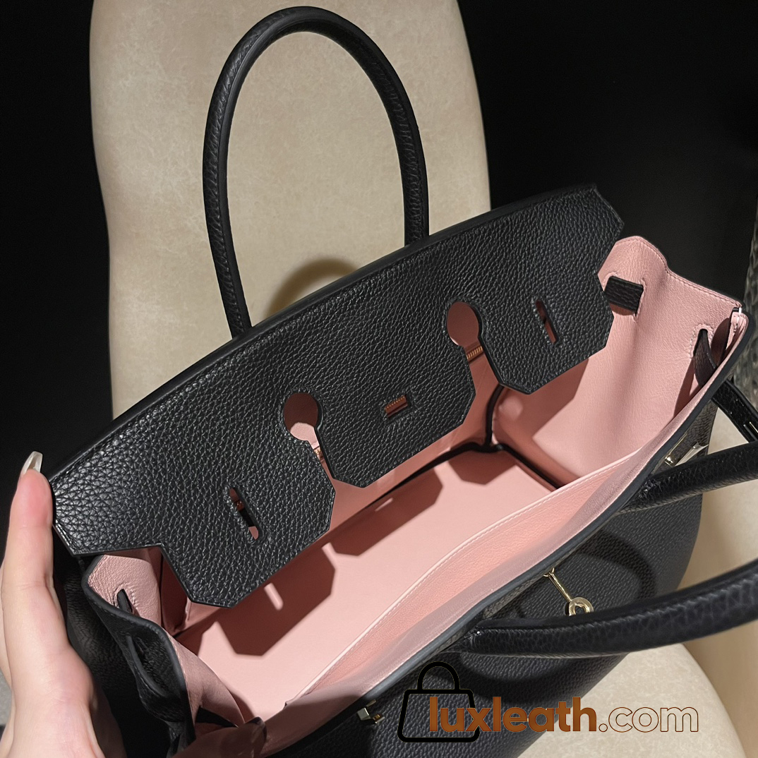 Leather 89/Black×3Q/Rose Sakura with Gold Fittings | Unique Color Combination, Custom-Made Birkin 35 Togo