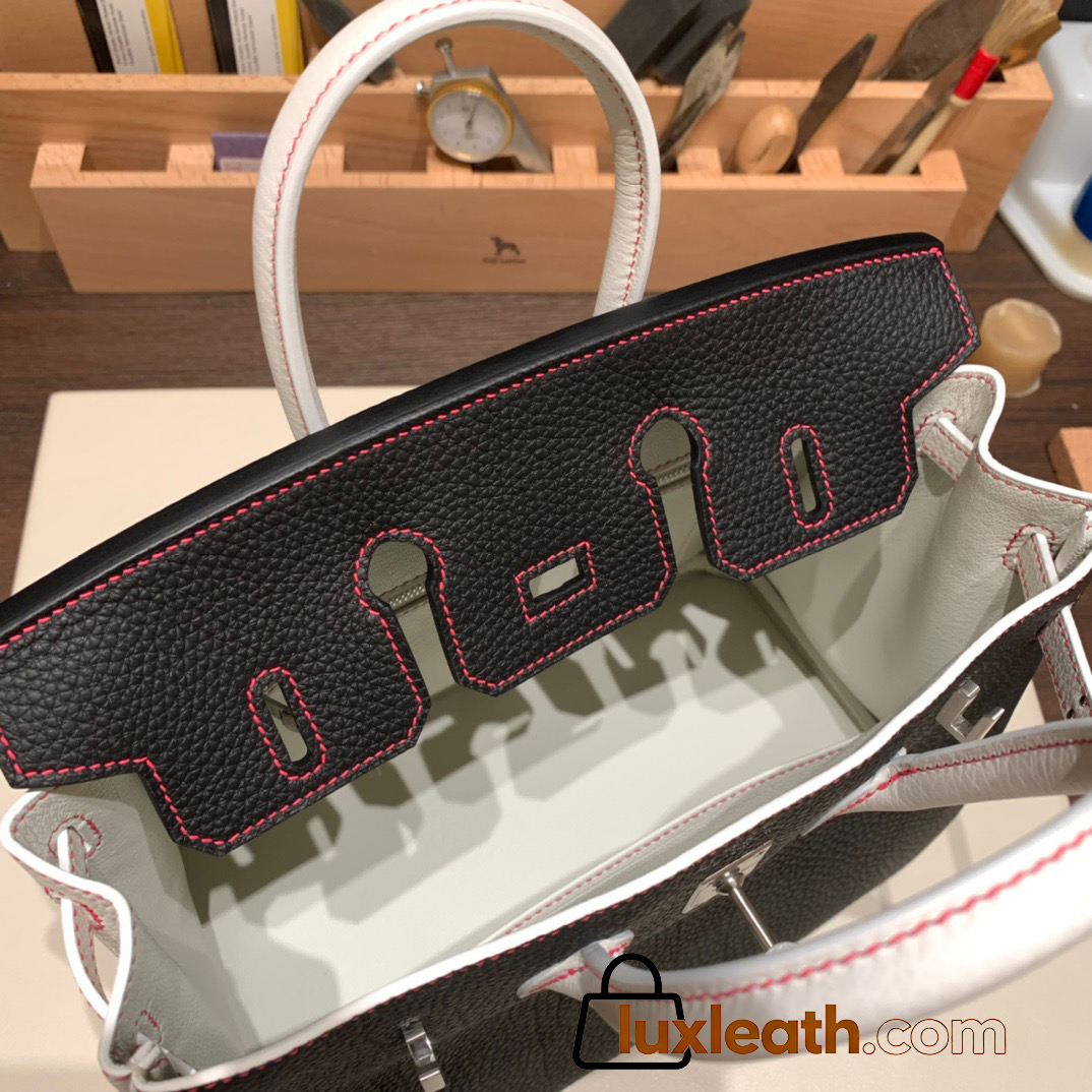 【 HERMES】Birkin 25 Togo 01 White ×J7 Blue Lin Silver