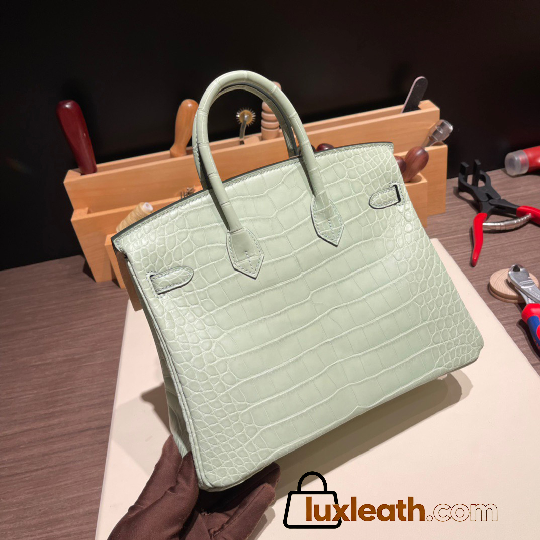 Hermes Birkin25 Alligator Crocodile 6u/vert deau Silver Hardware Full Handmade 012