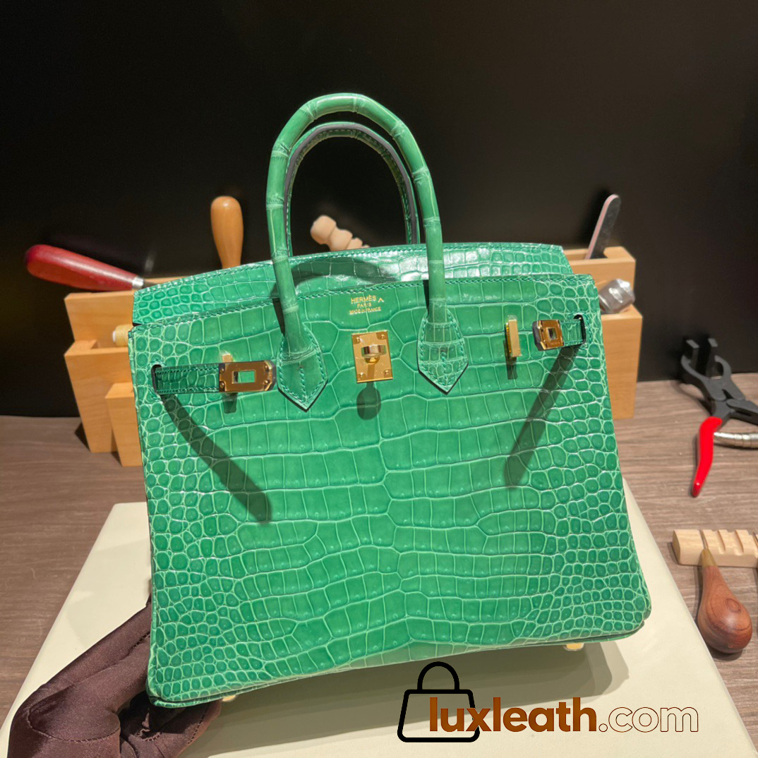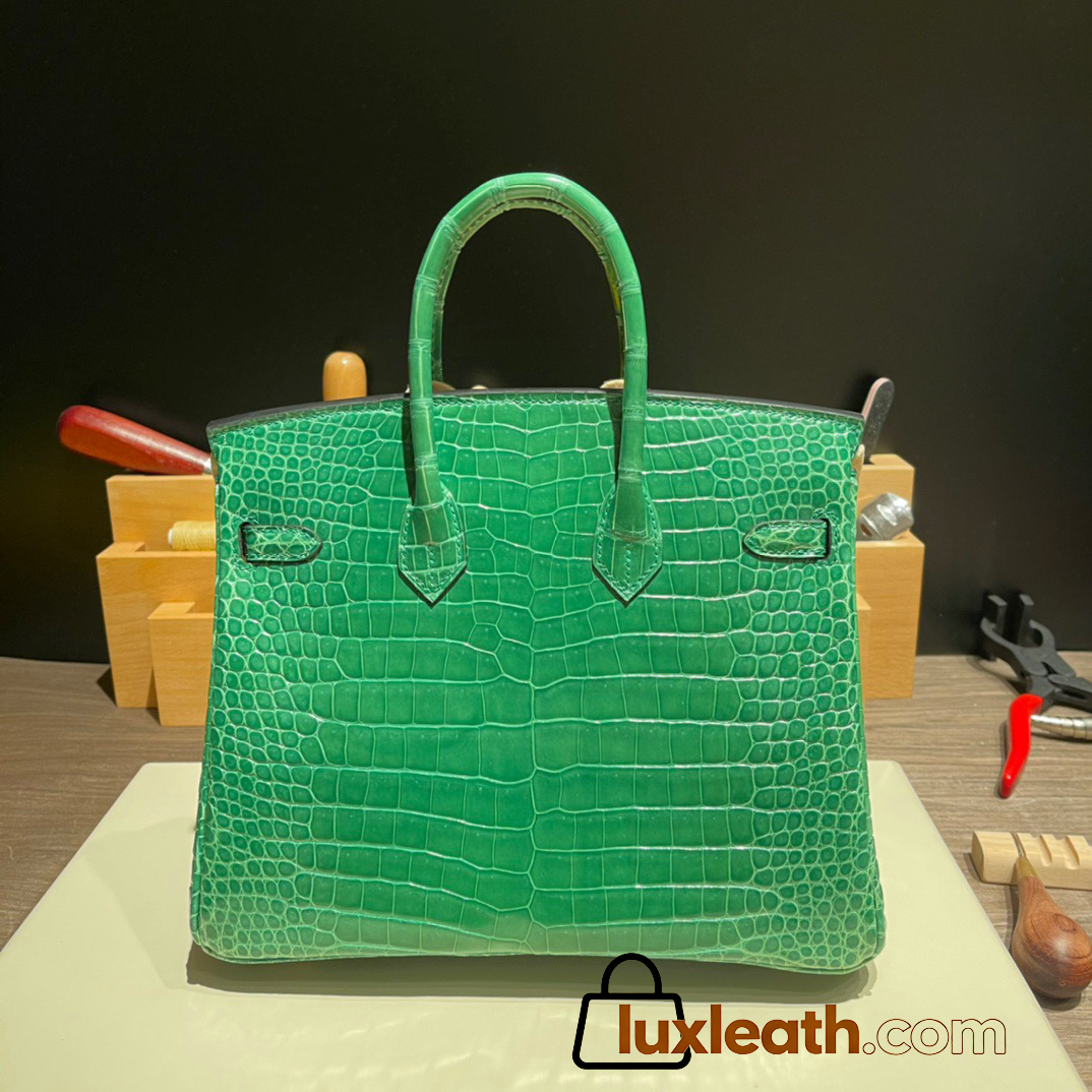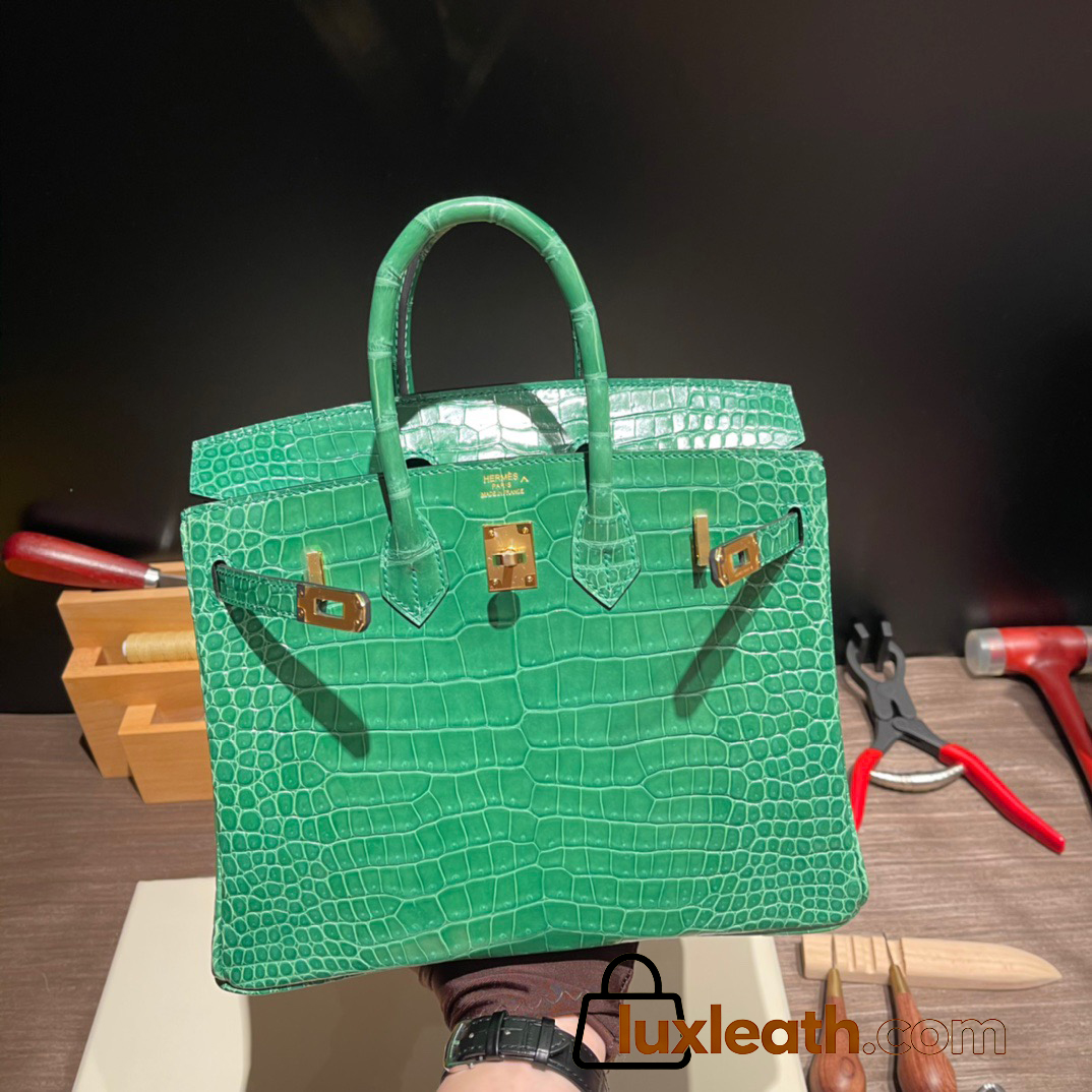 Hermes Birkin25 porous Crocodile 1L/Cactus Gold Hardware Full Handmade 003