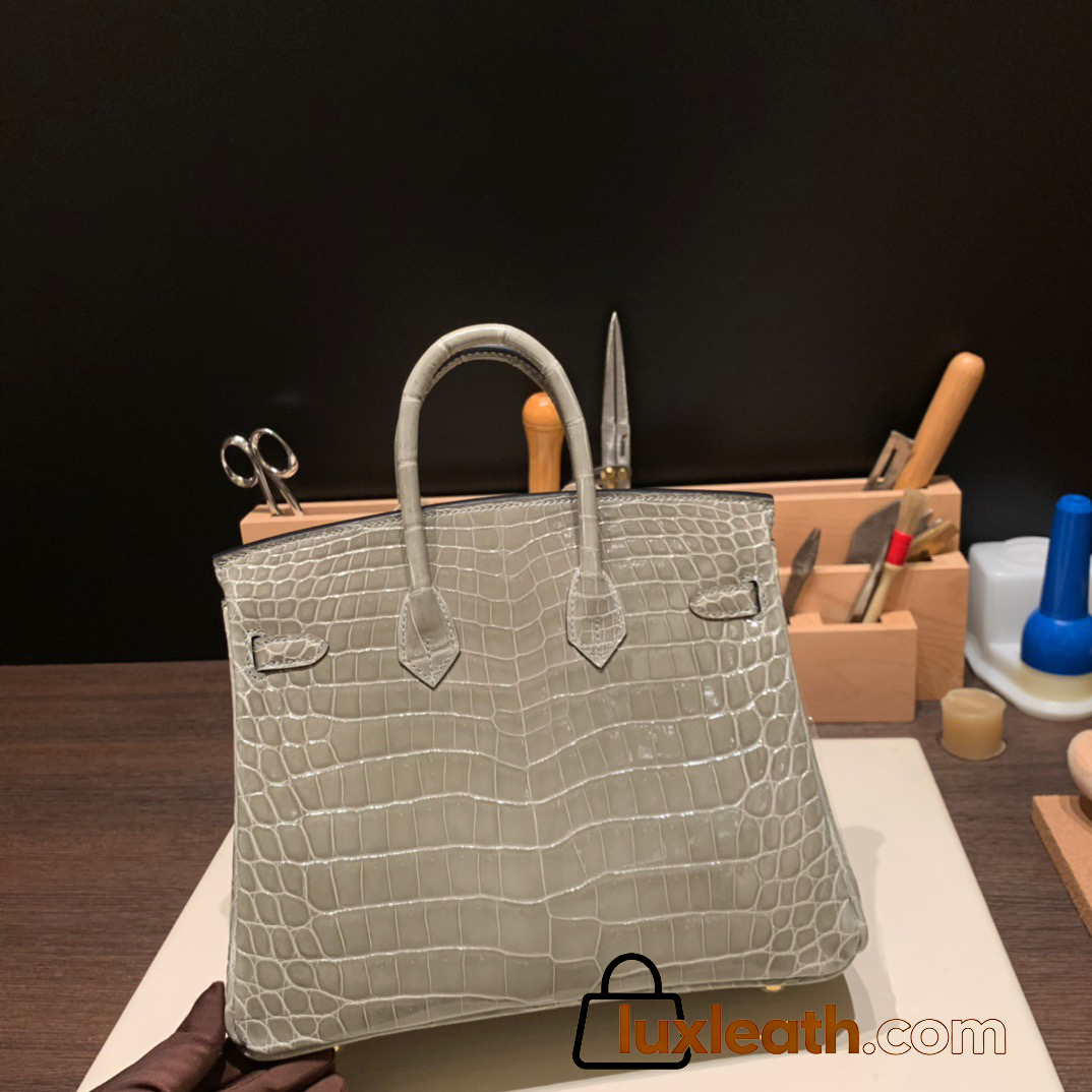 Hermes Birkin25 Crocodile Niloticus 81/Gris Tourterelle  Gold Hardware Full Handmade 009