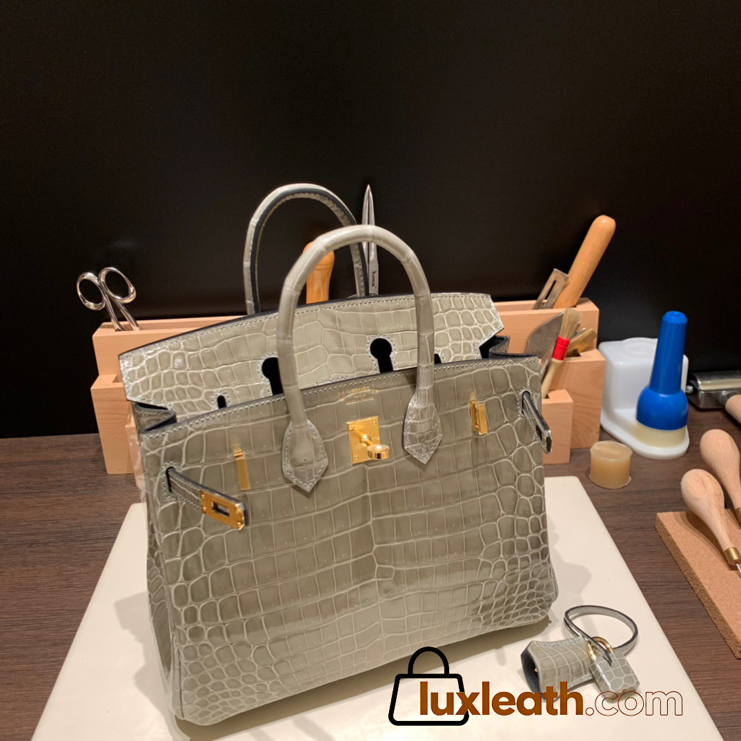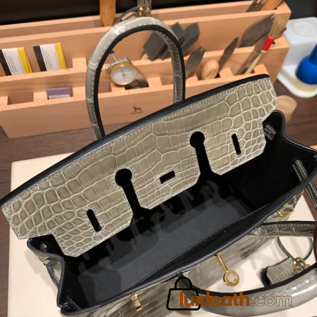 Hermes Birkin25 Crocodile Niloticus 81/Gris Tourterelle Gold Hardware Full Handmade 009