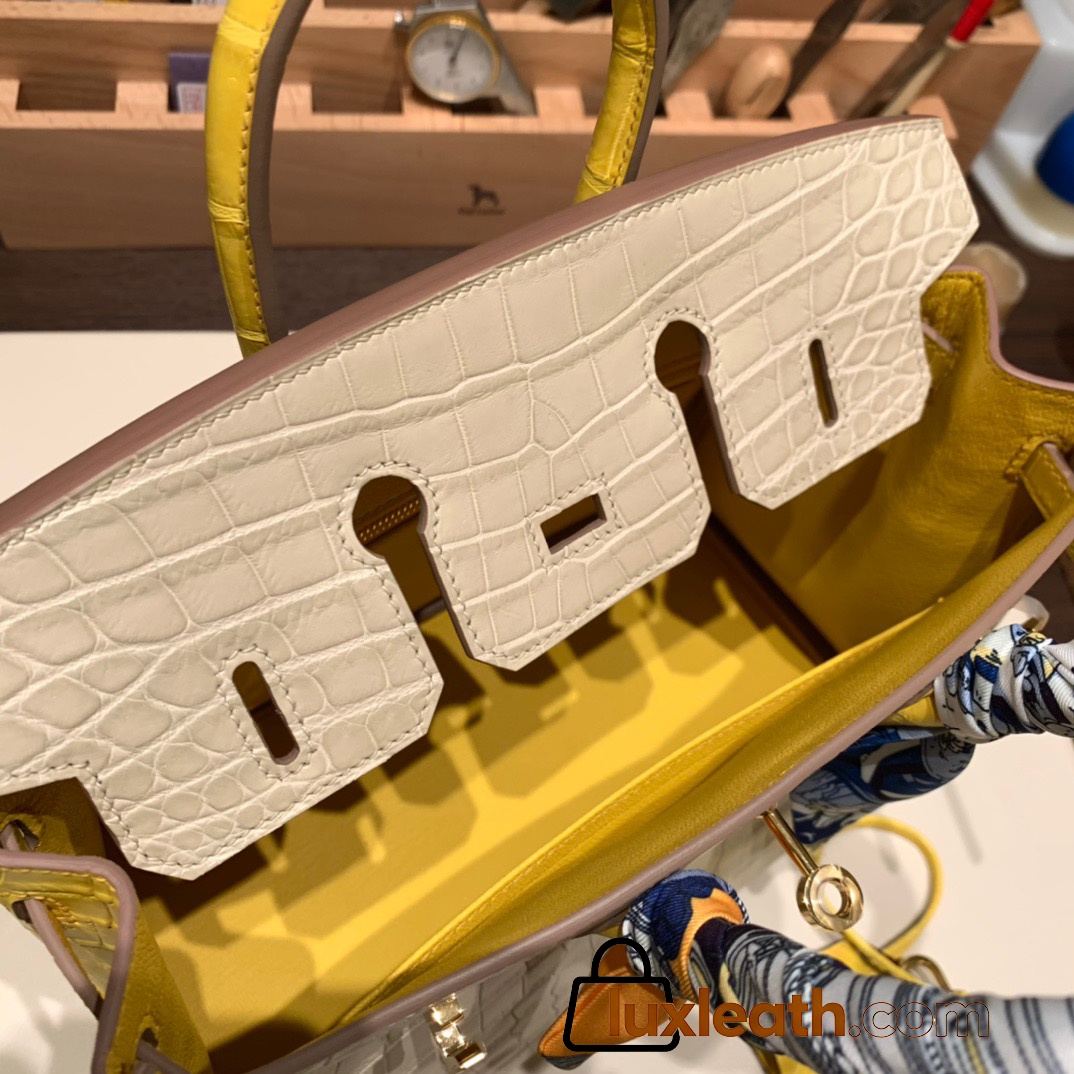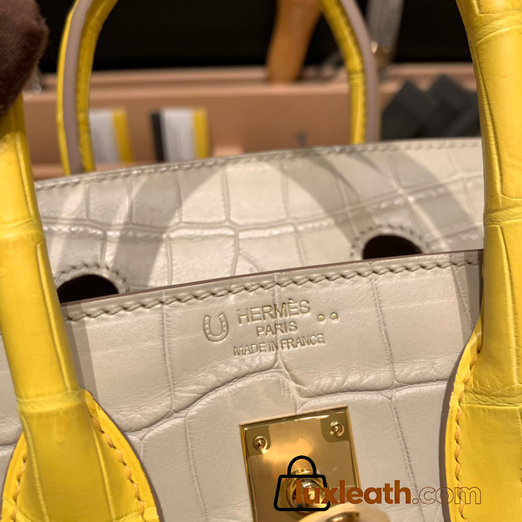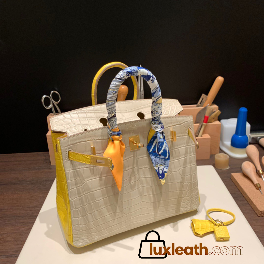 Hermes Birkin25 Crocodile Niloticus 80/Pearl Grey&16 /Taupe Grey Gold Hardware Full Handmade 011