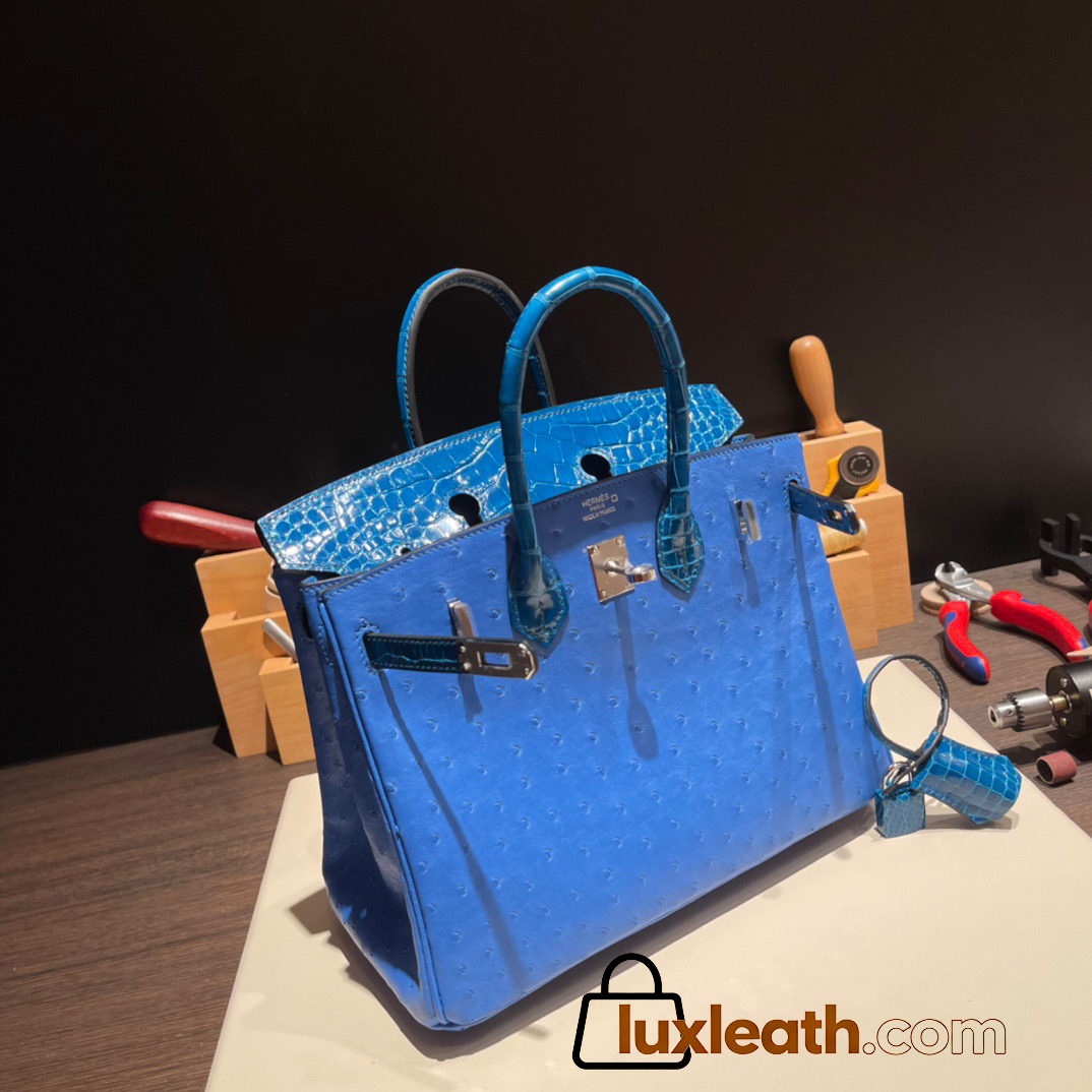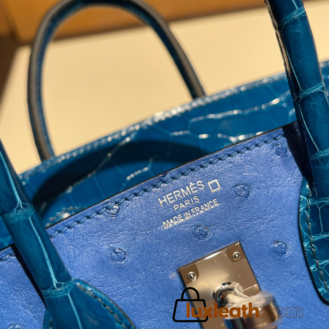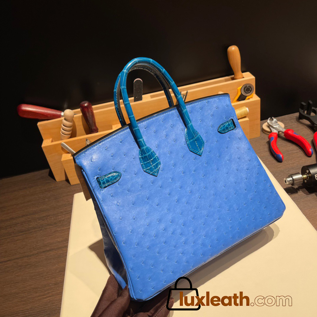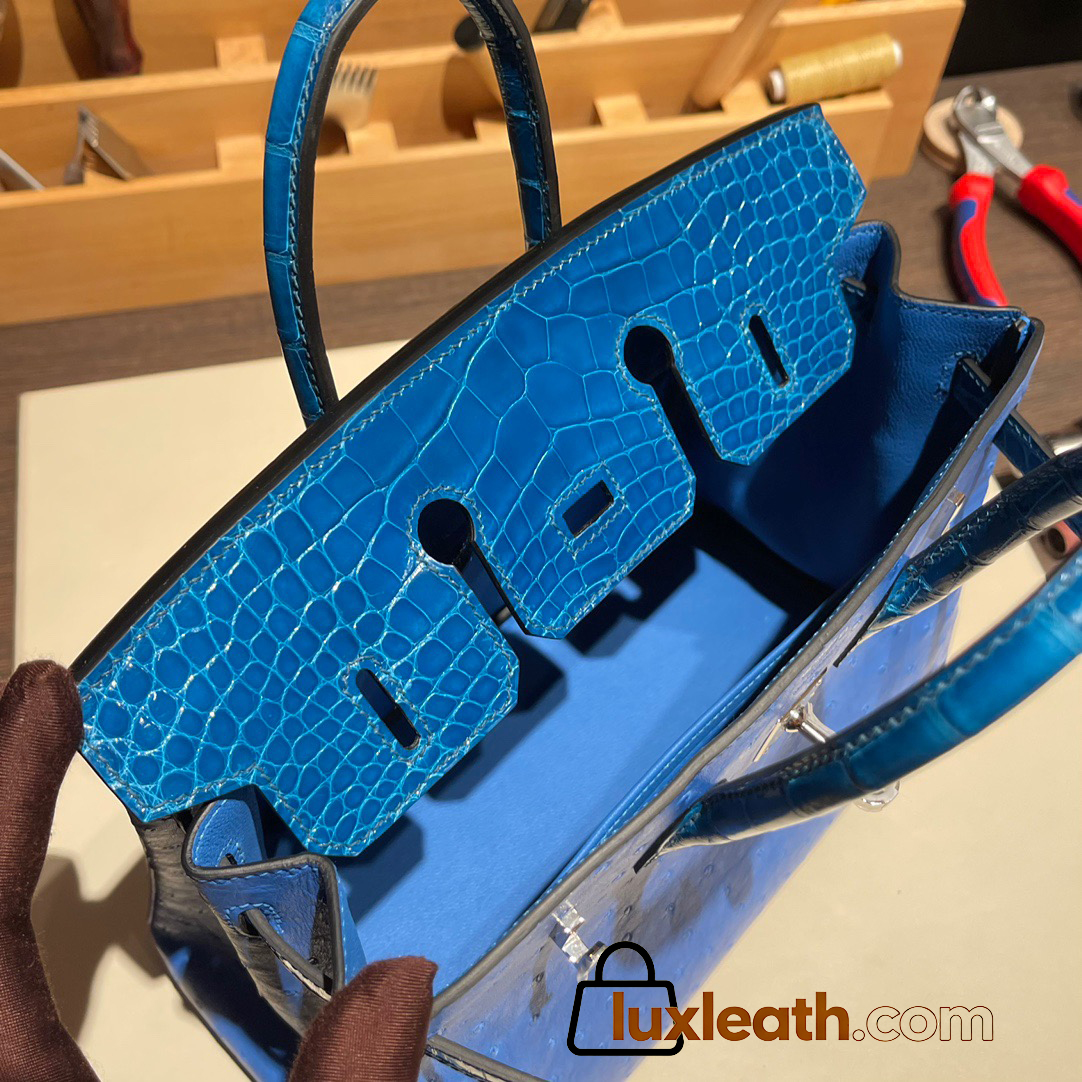 Birkin25 Alligator Crocodile touch Bleu Hydra& Bleu Izmir Silver Hardware Full Handmade 017