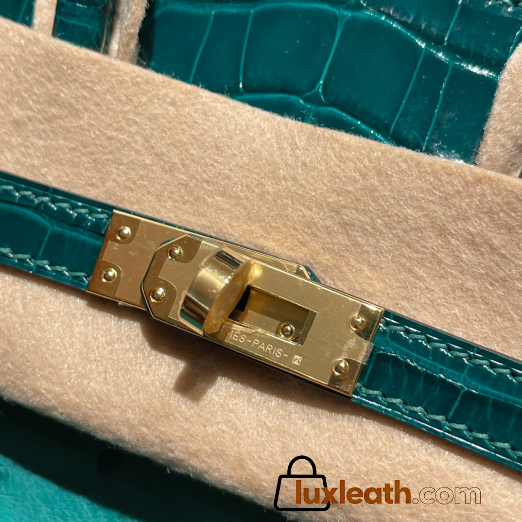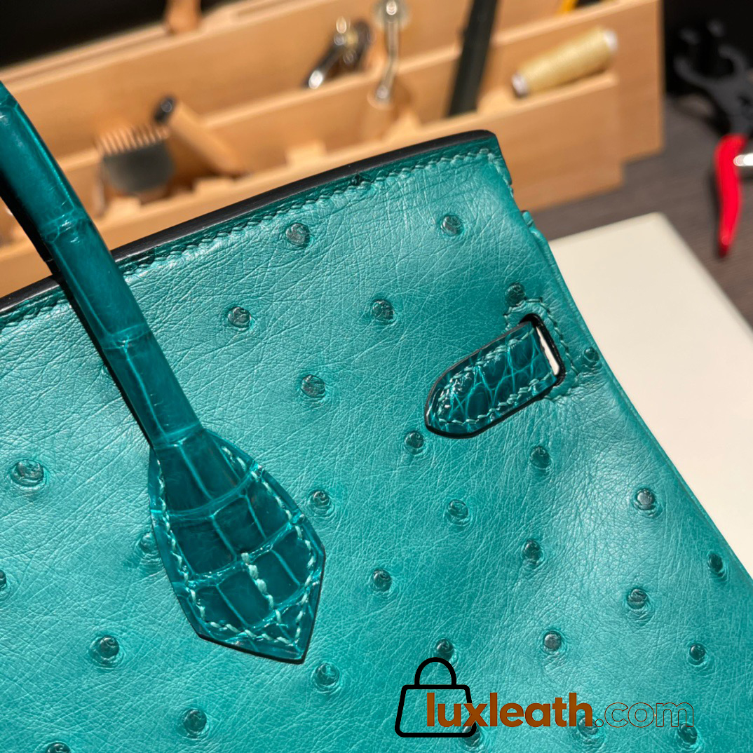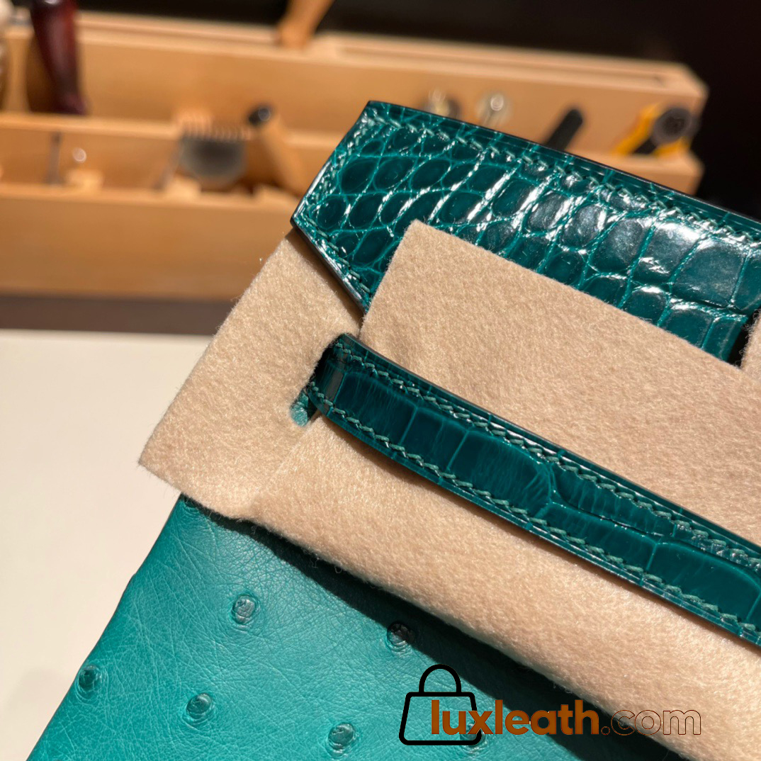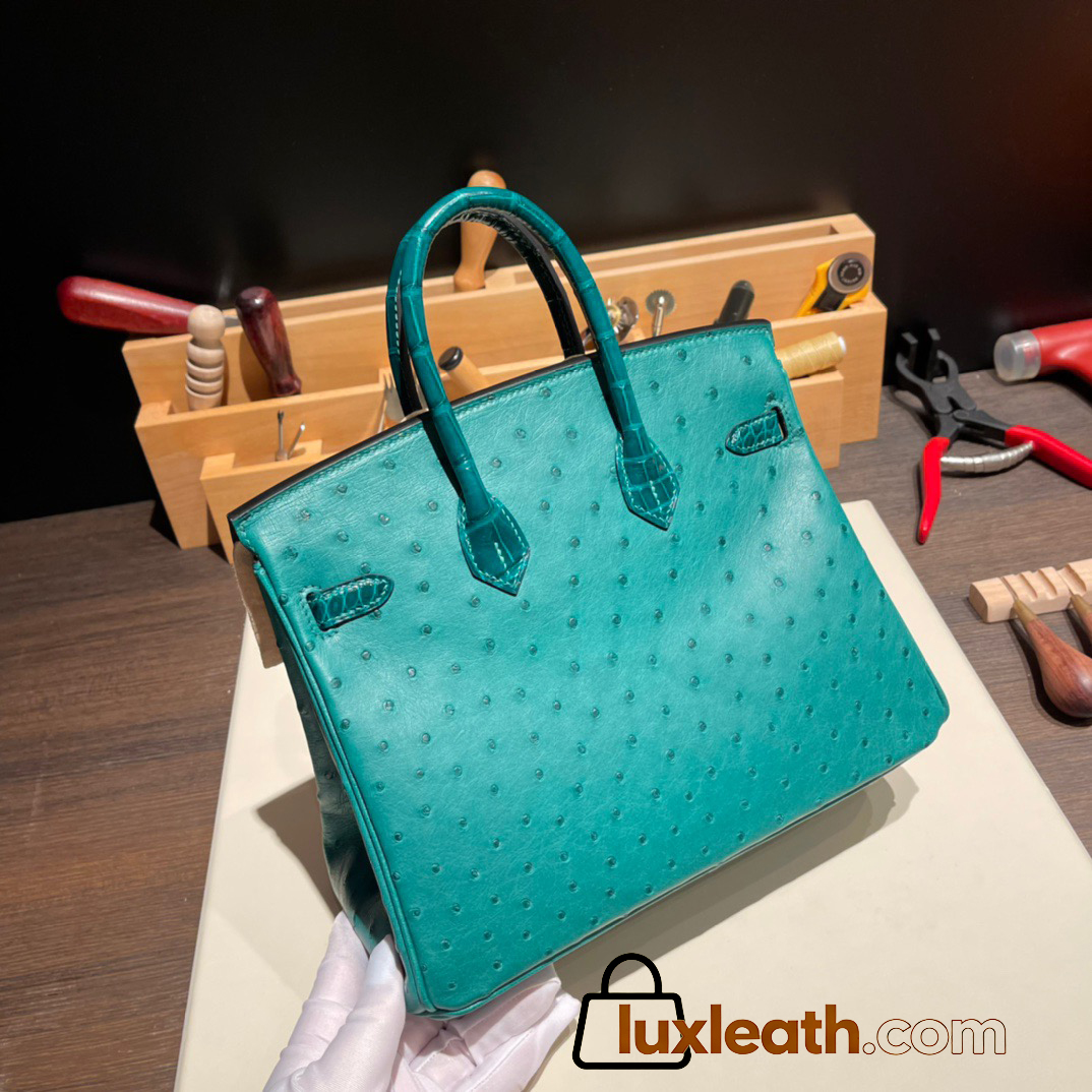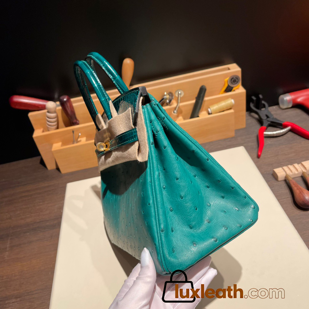 Birkin25 Ostrich Z6/Malachite& 6Q Vert Emeraude Gold Hardware Full Handmade 019