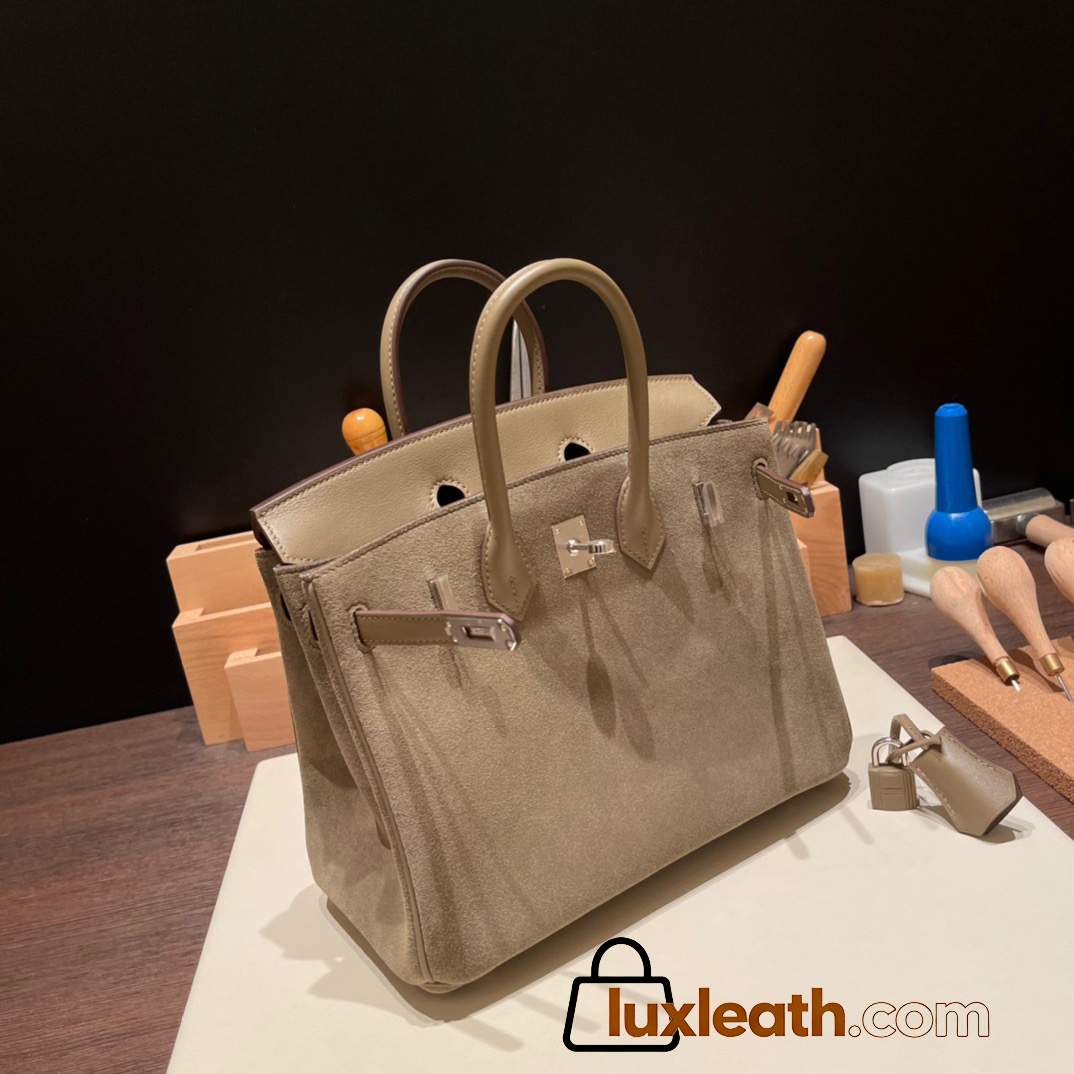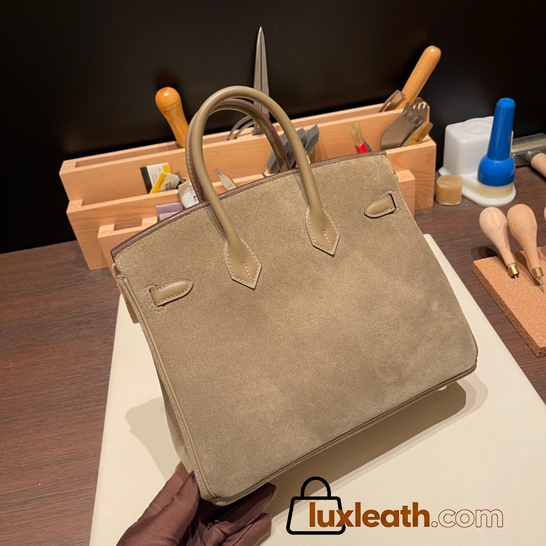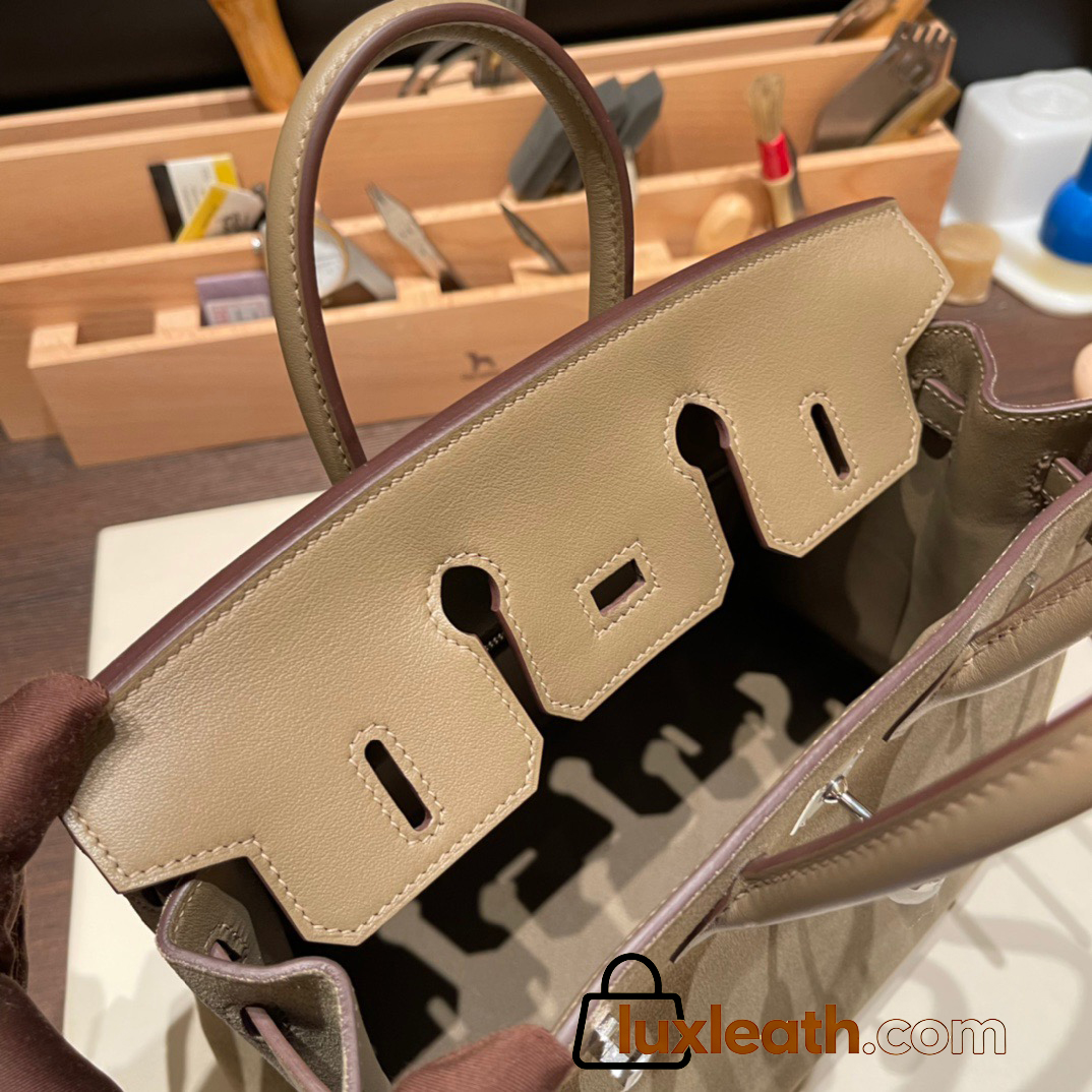 25cm birkin Chamois 18/Étoupe Grey Silver Hardware Full Handmade 023