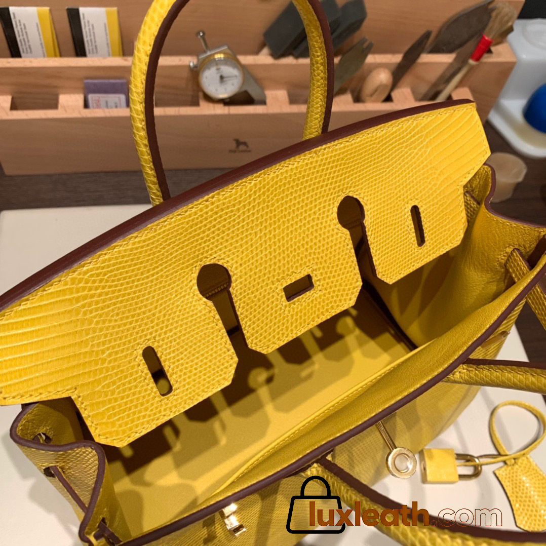Hermes Birkin 25cm Lizard K5/Tosca Gold Hardware Full Handmade 035