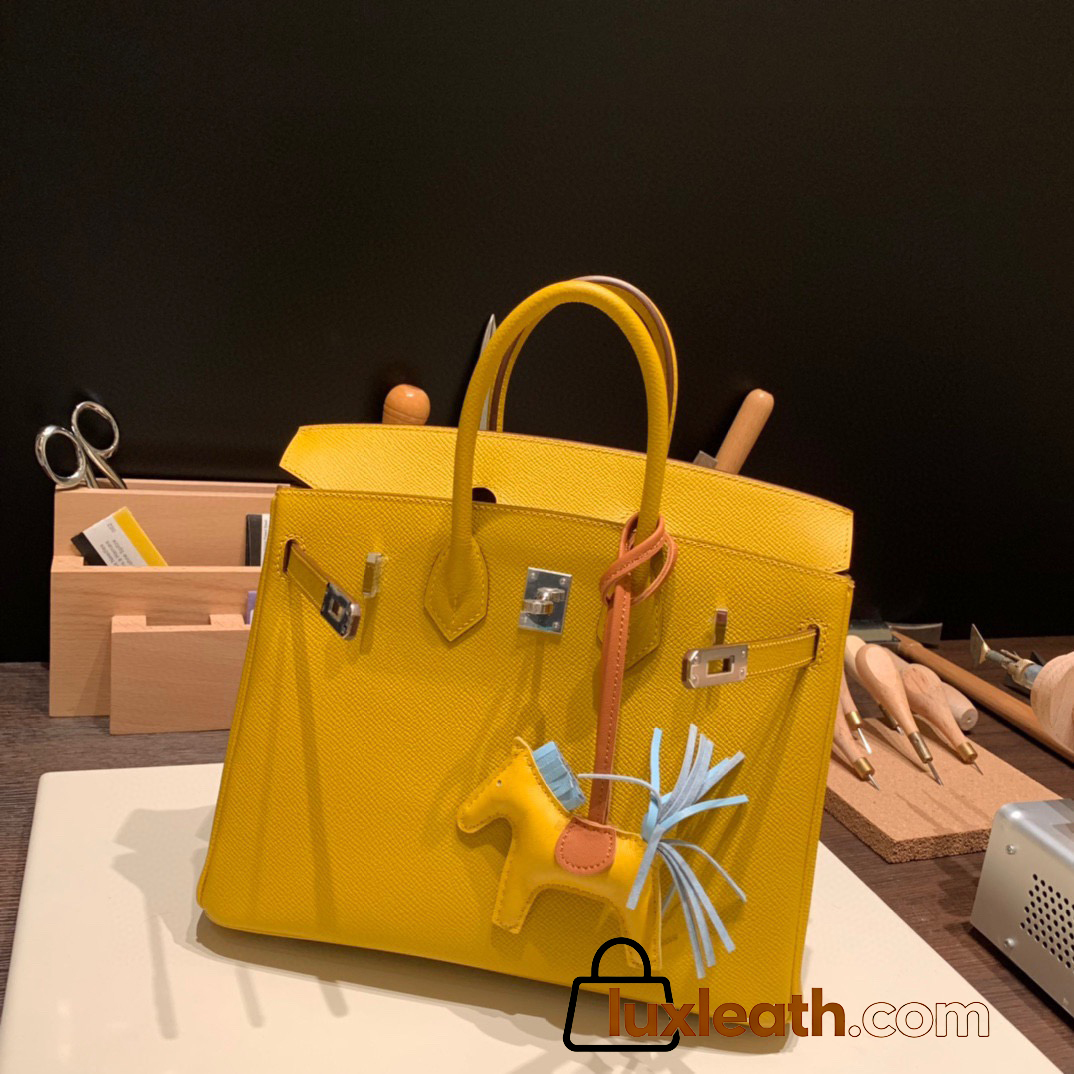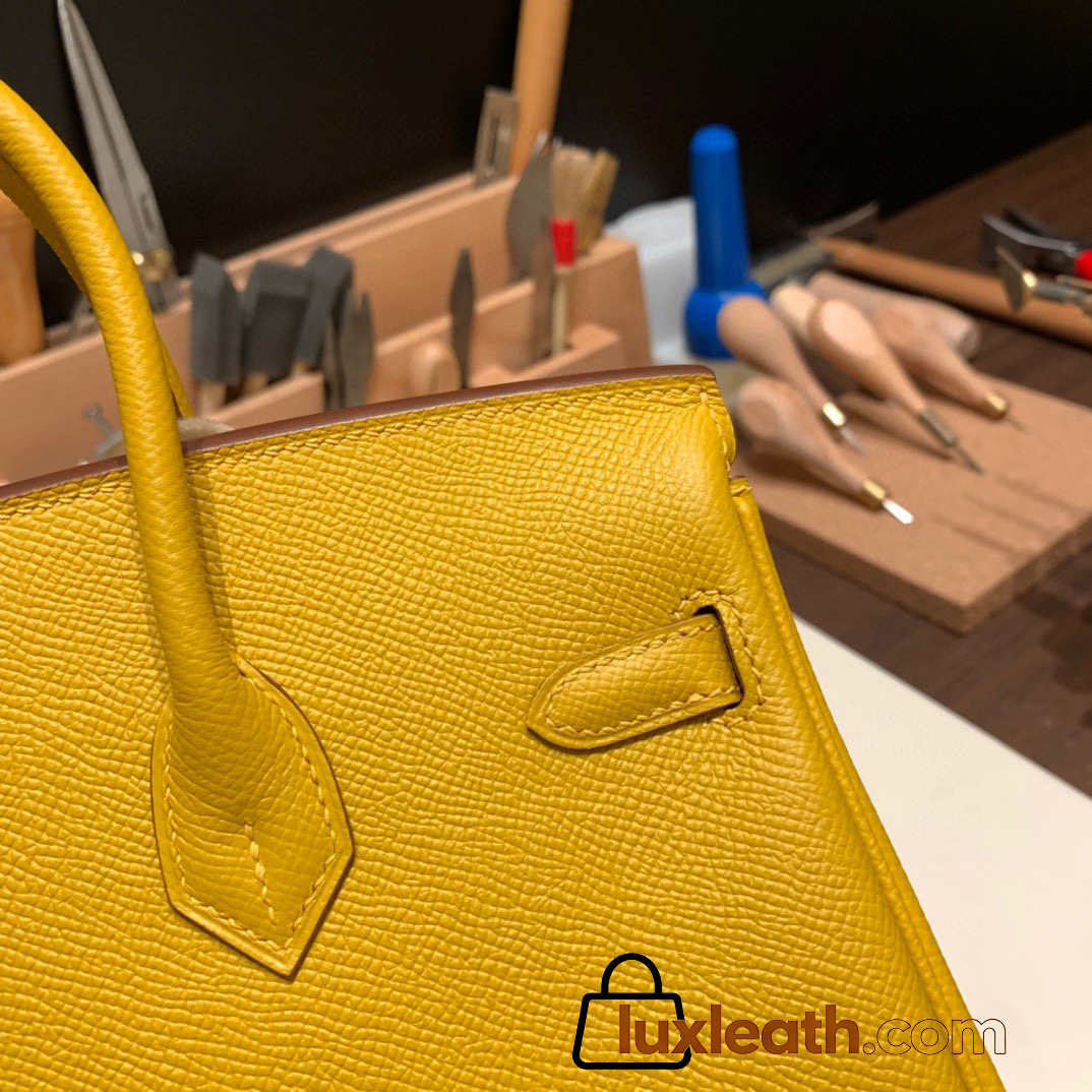 Hermes Birkin 25cm Epsom 1Z /Jaune Poussin& 7T/Blue Electric Full Handmade 050