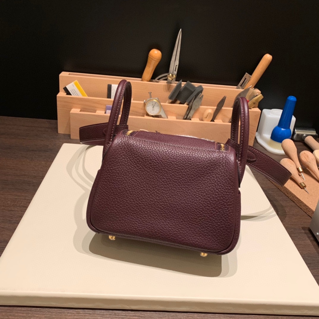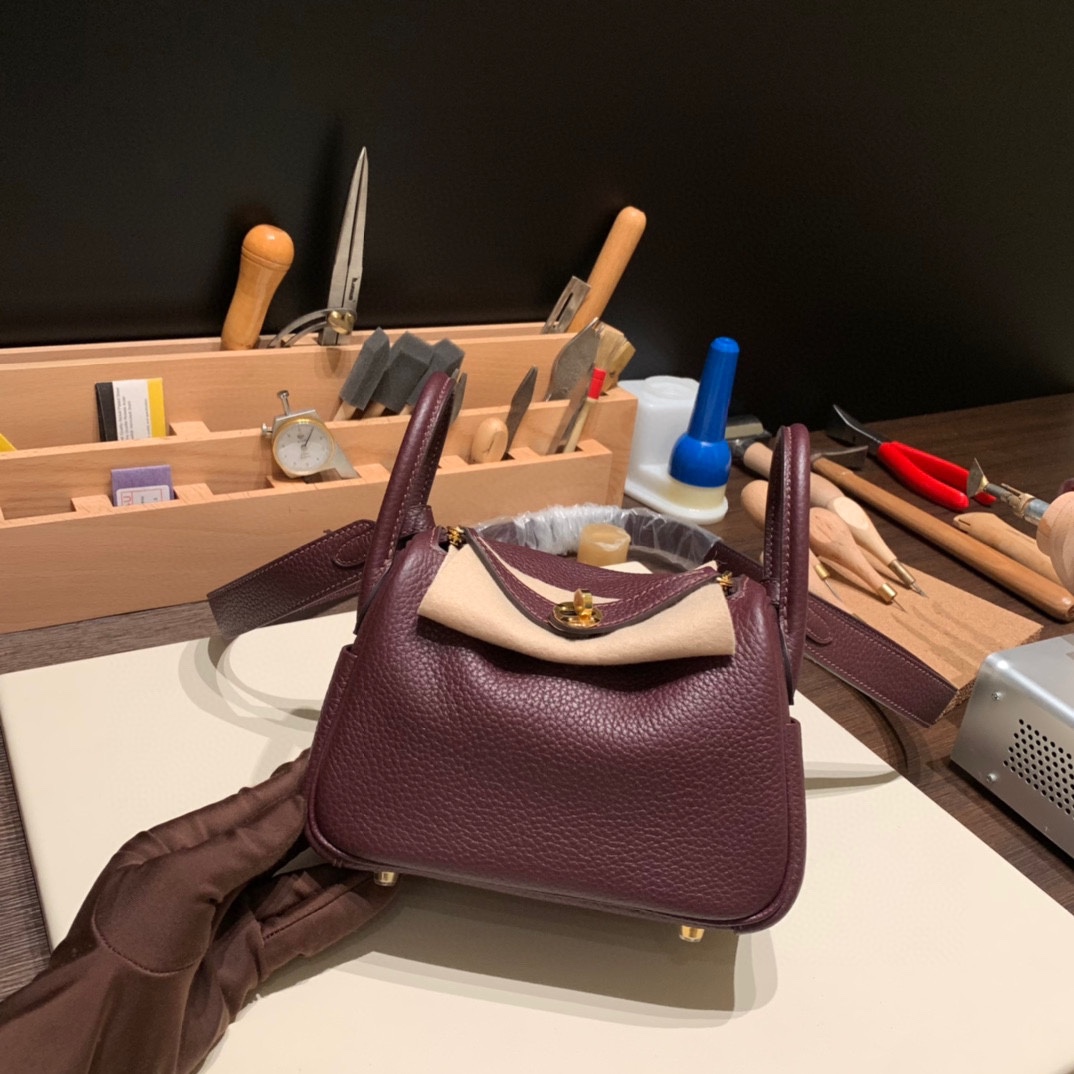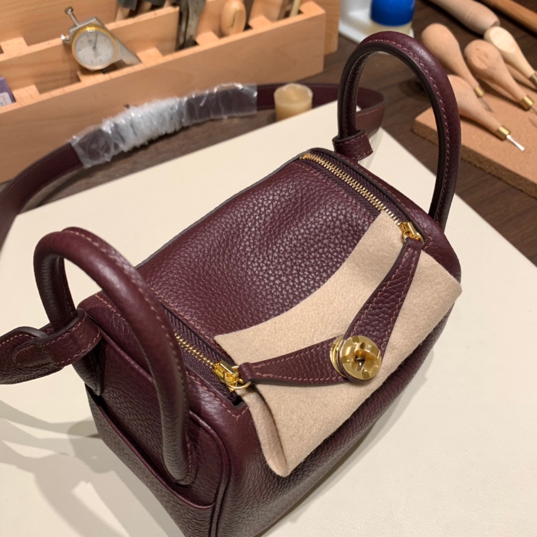 Hermès Lindy Mini × Rouge SellierFull Handmade